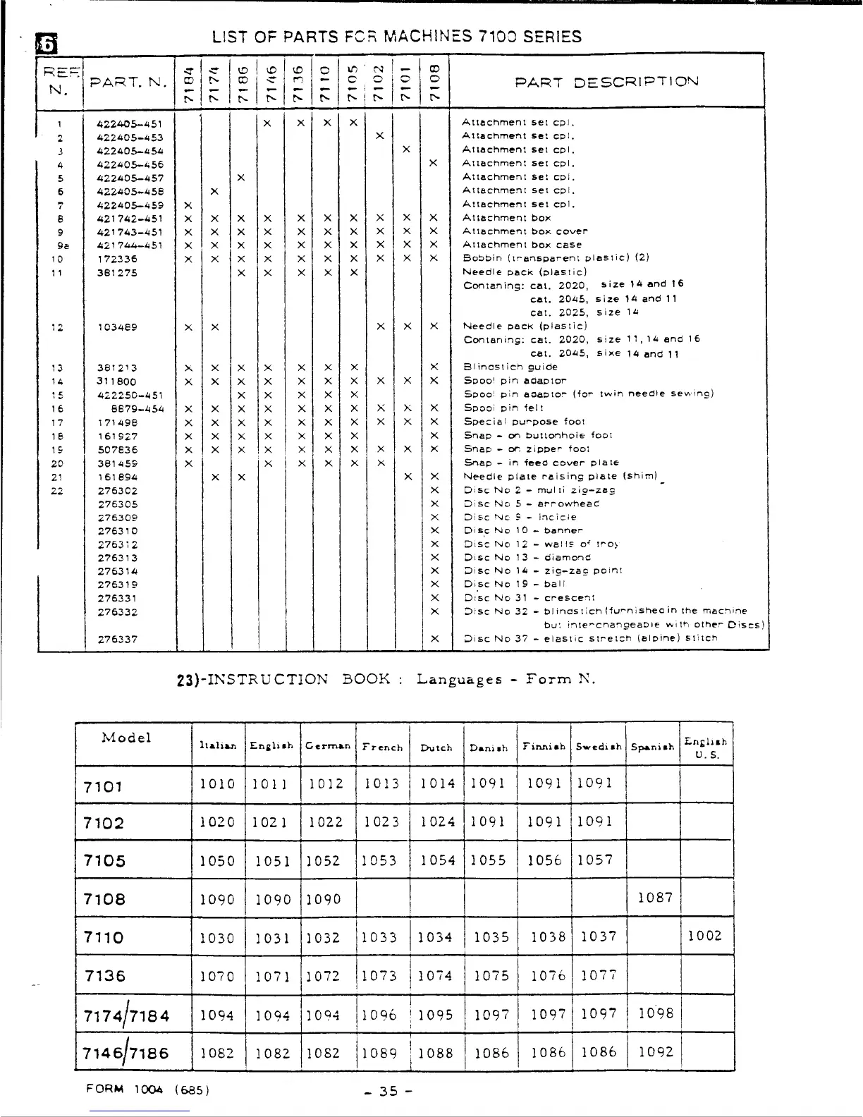 Singer 7100 SERIES - Instruction Book Language Availability; Instruction Book Languages by Model