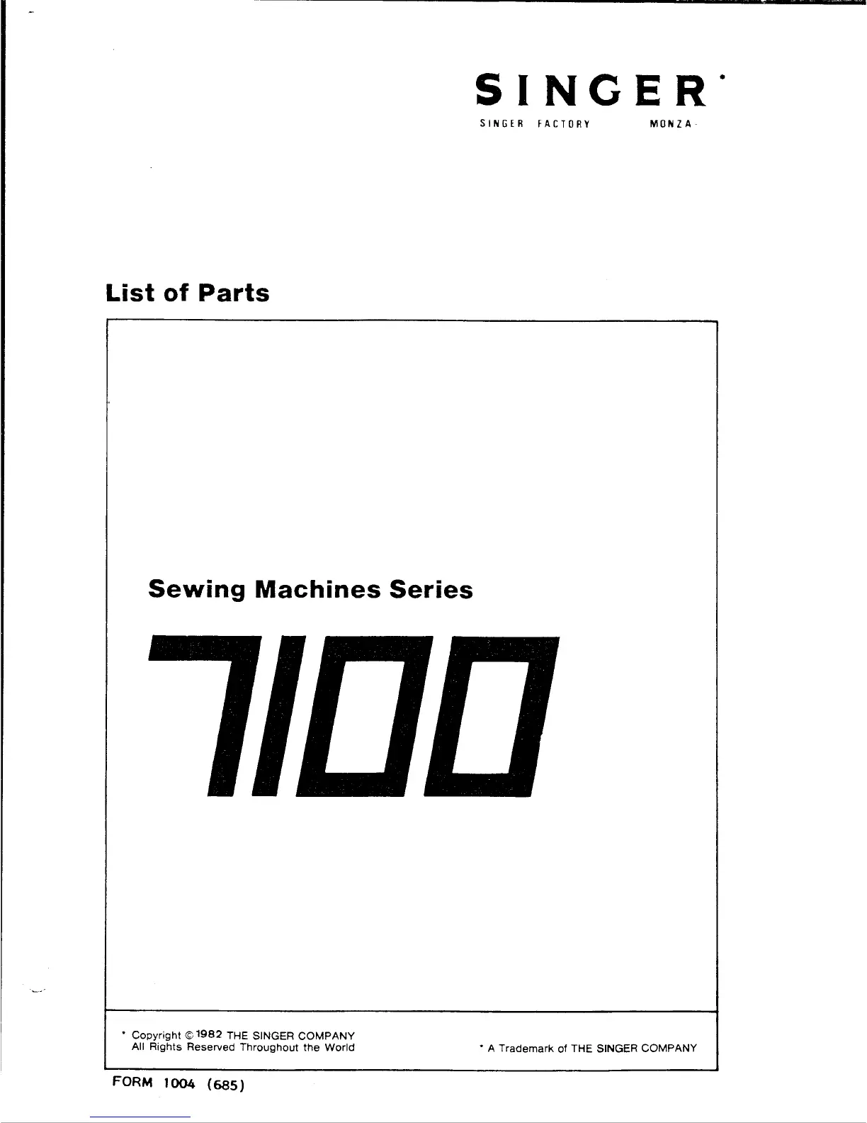 Singer 7100 SERIES - Singer 7100 Series Parts Catalog Introduction; 7100 Series Sewing Machines