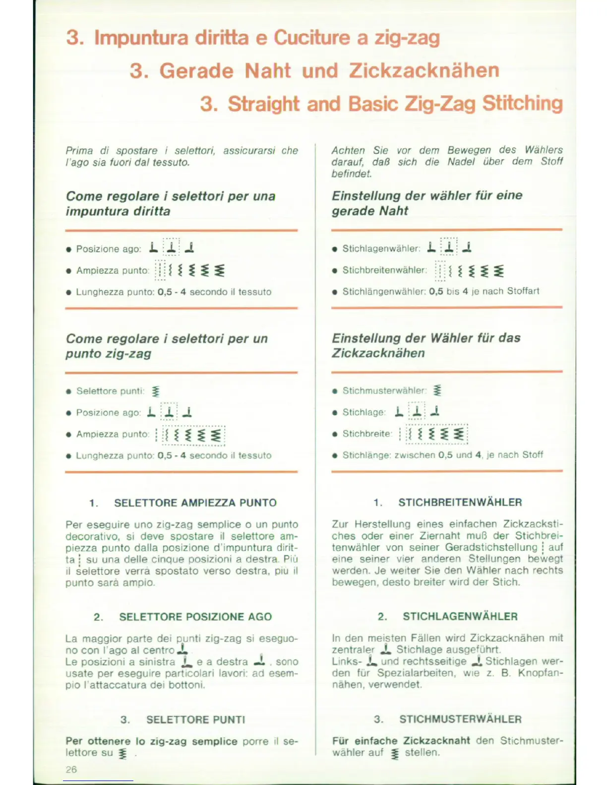 Singer 7108 - Straight and Basic Zig-Zag Stitching; Setting Selectors for Straight Stitching; Setting Selectors for Zig-Zag Stitching