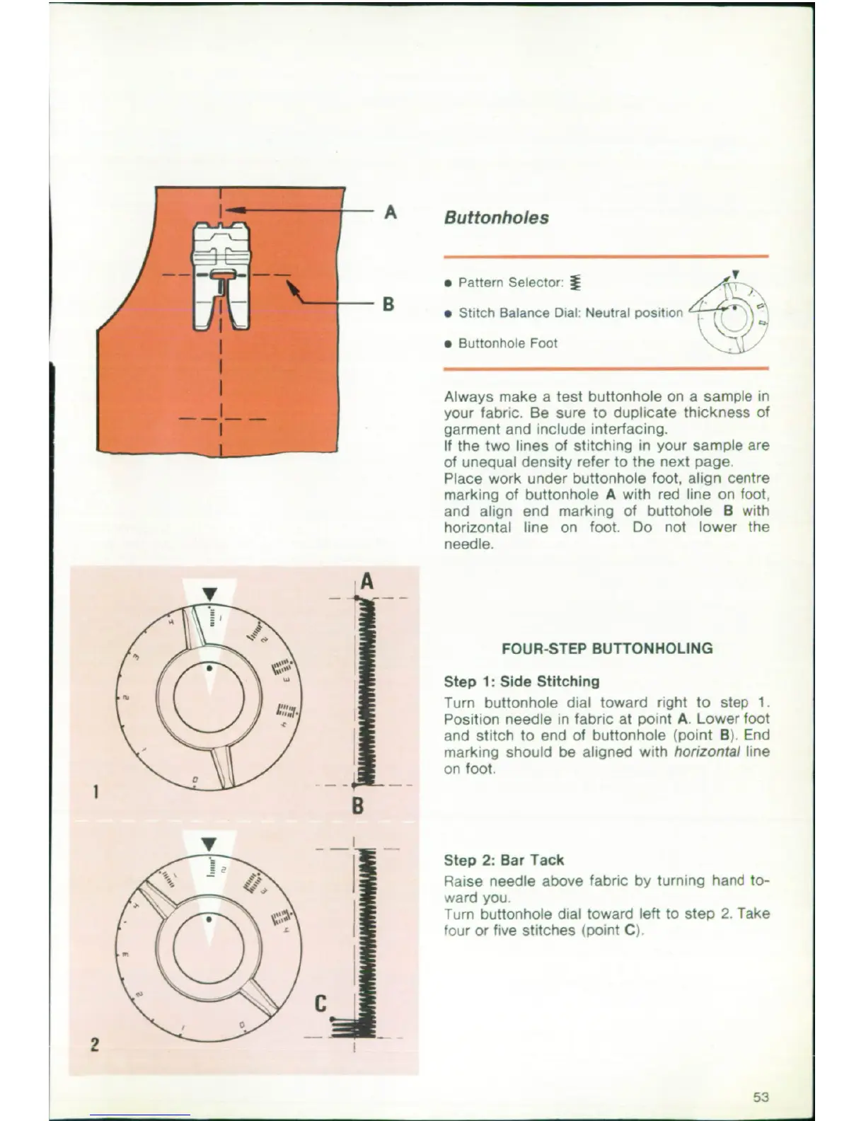 Singer 7108 - Buttonholes; Four-Step Buttonholing