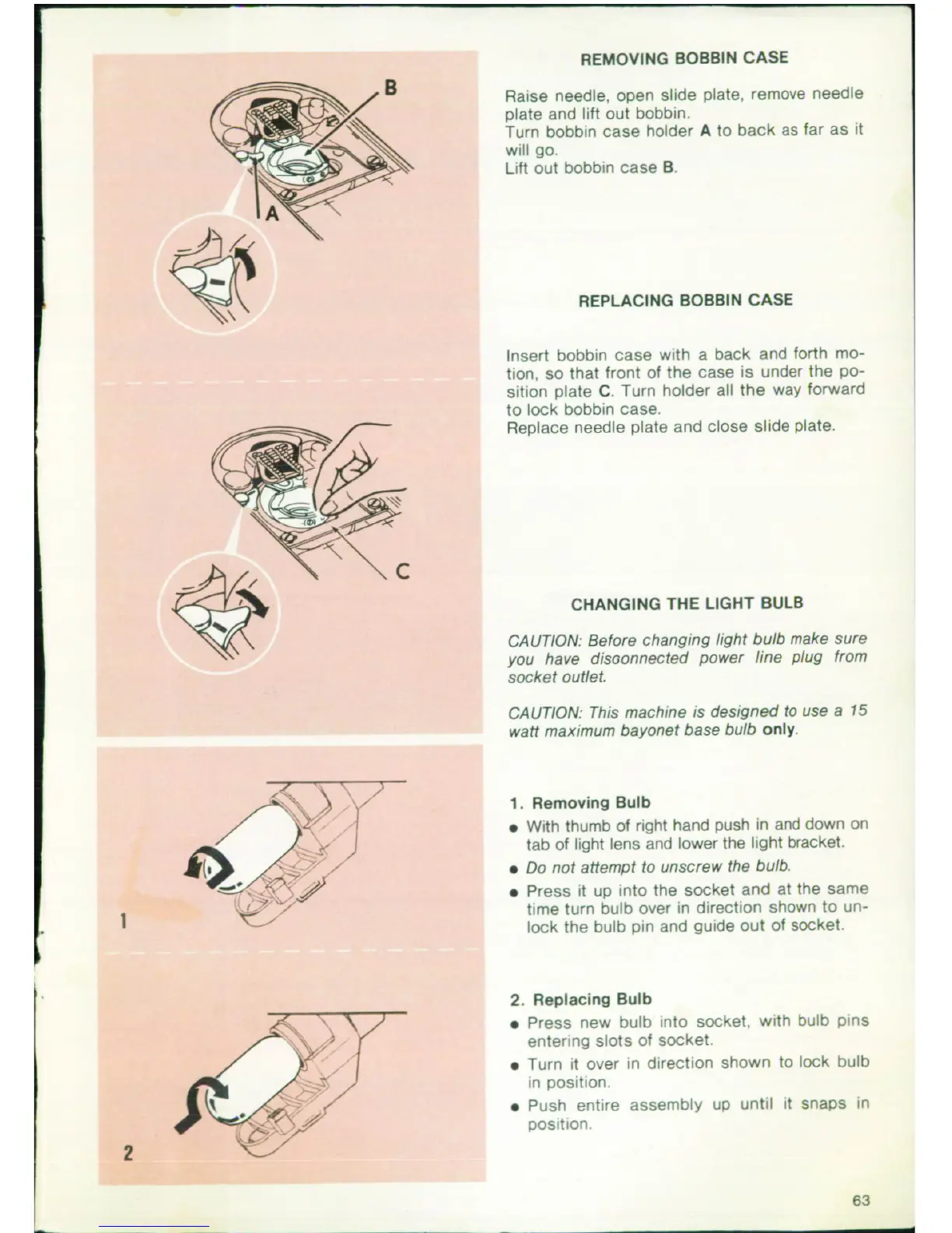 Singer 7108 - Removing;Replacing Bobbin Case; Changing the Light Bulb