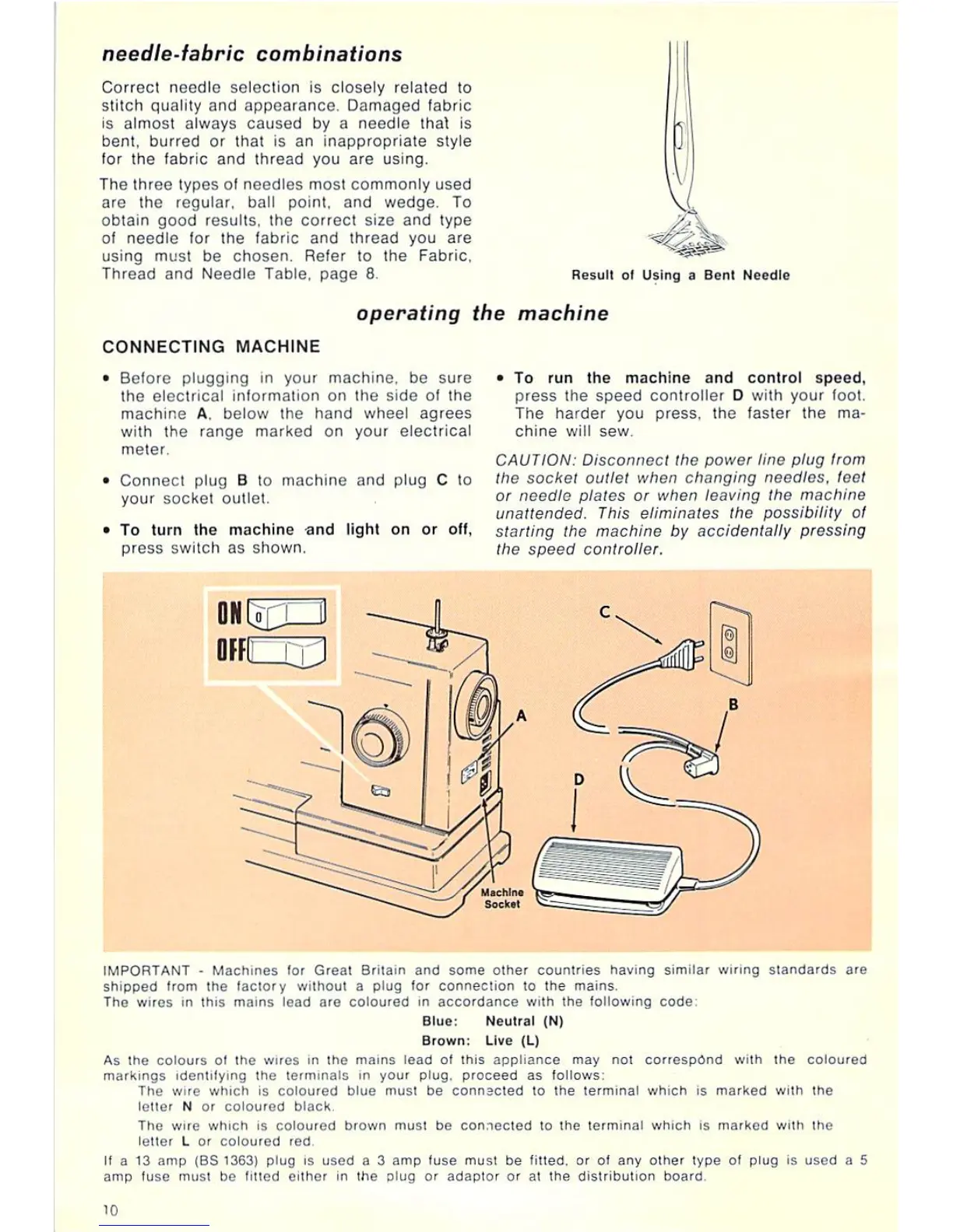 Singer 7110 - Chapter 1: Getting to Know Your Machine; Connecting the Sewing Machine; Operating the Sewing Machine