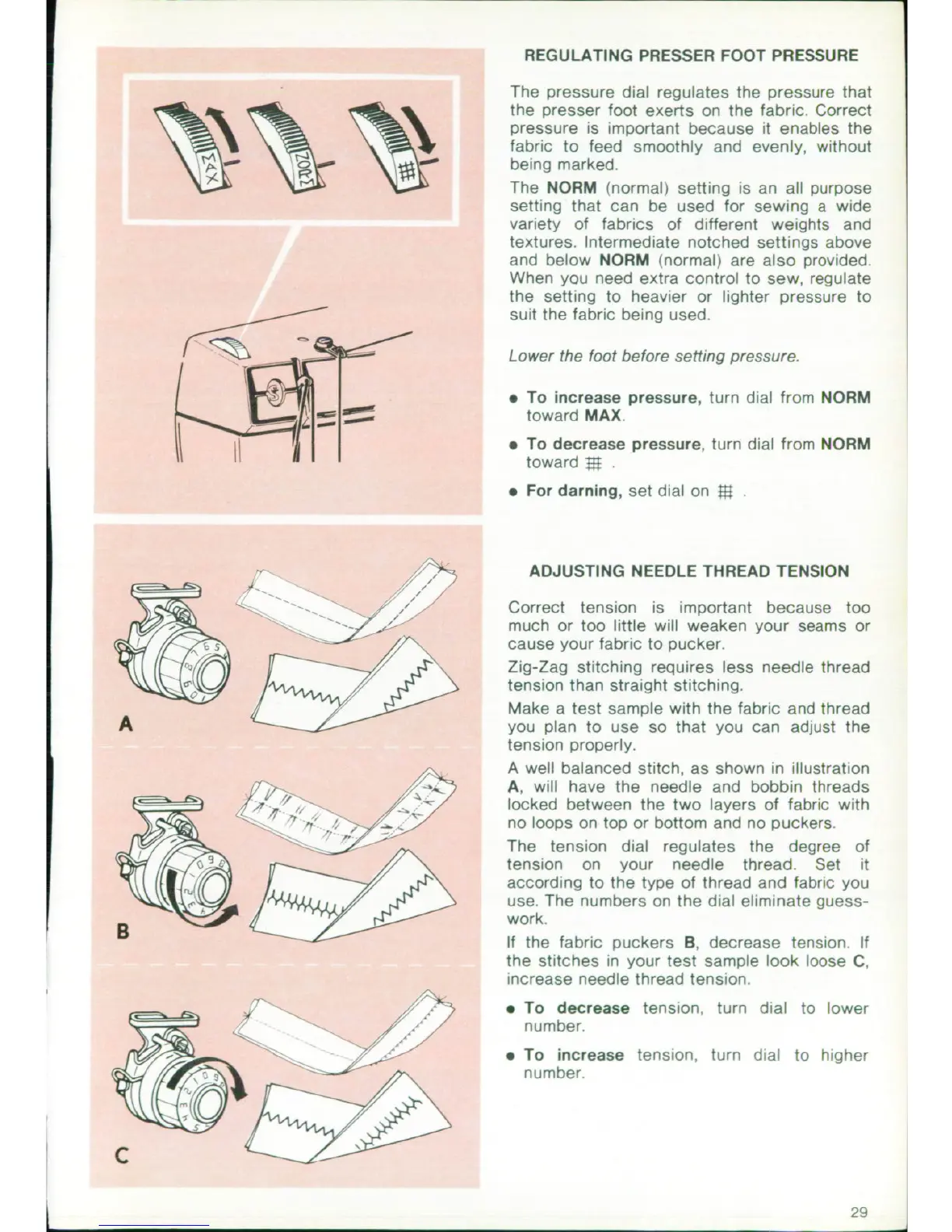 Singer 7146; 7186 - Regulating Presser Foot Pressure; Adjusting Needle Thread Tension