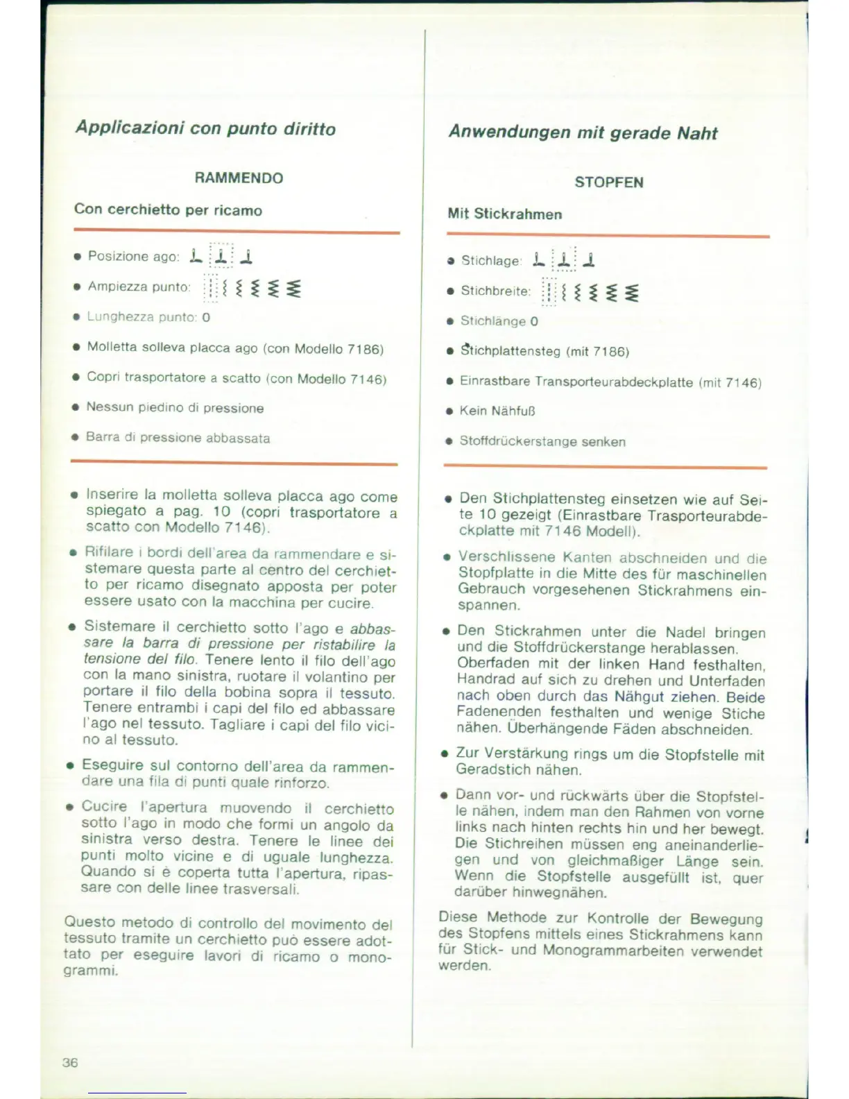 Singer 7146; 7186 - Darning with Embroidery Hoop