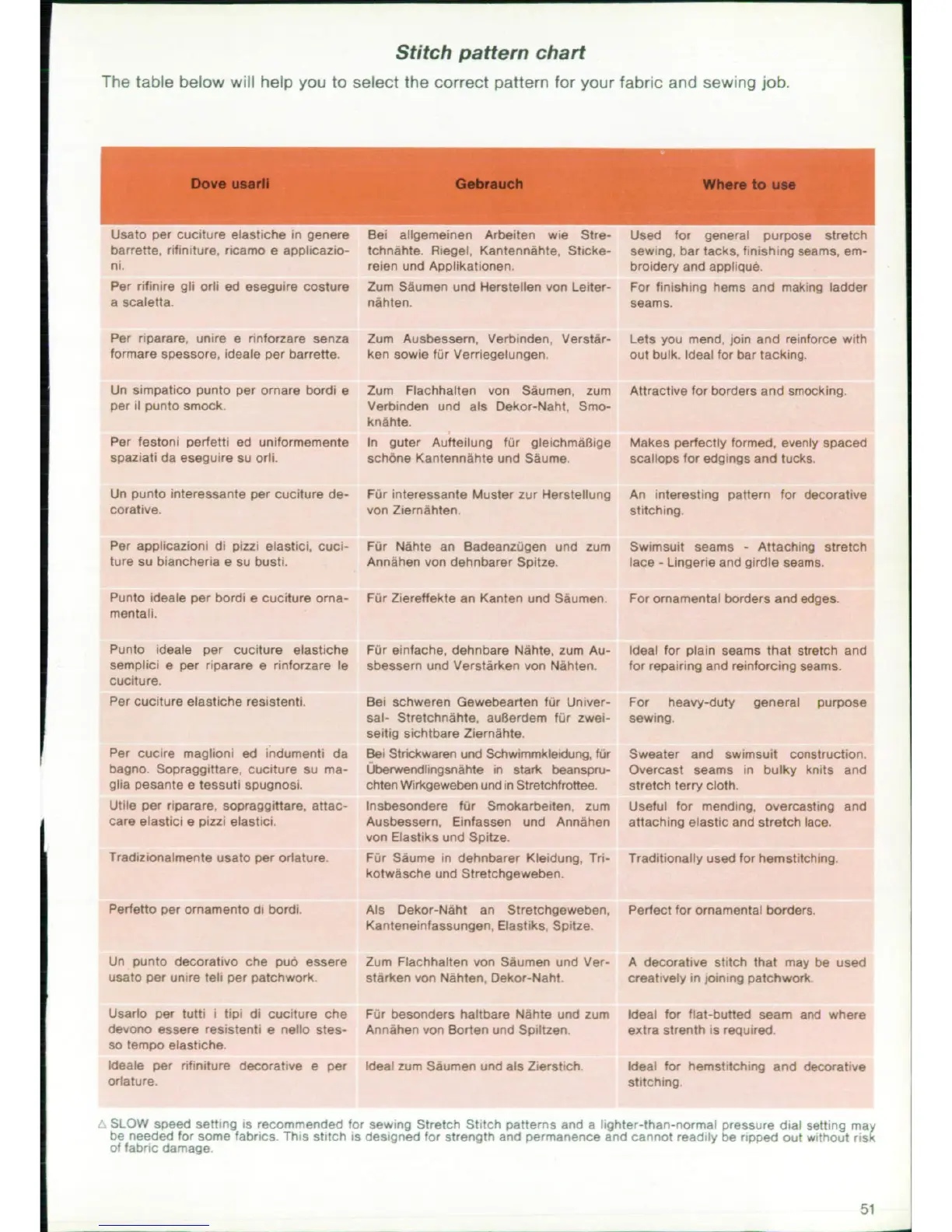 Singer 7146; 7186 - Stitch Pattern Chart