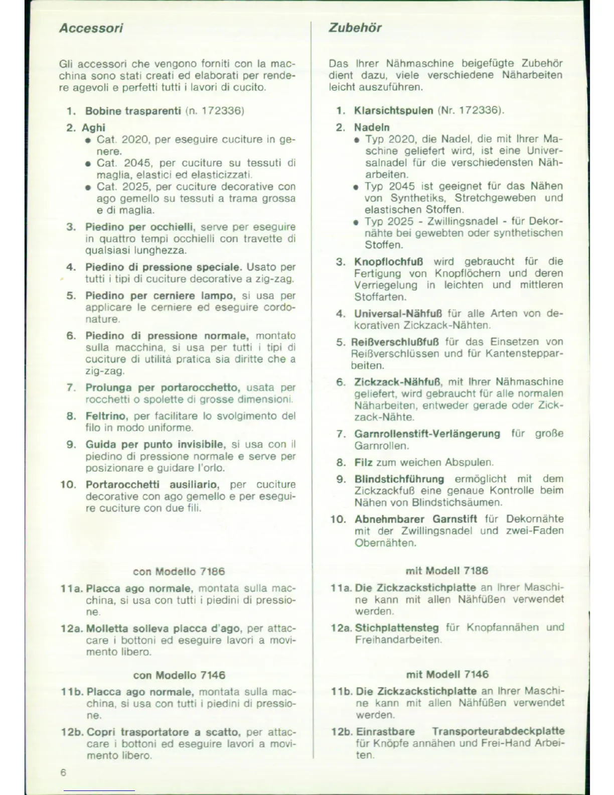 Singer 7146; 7186 - Accessories