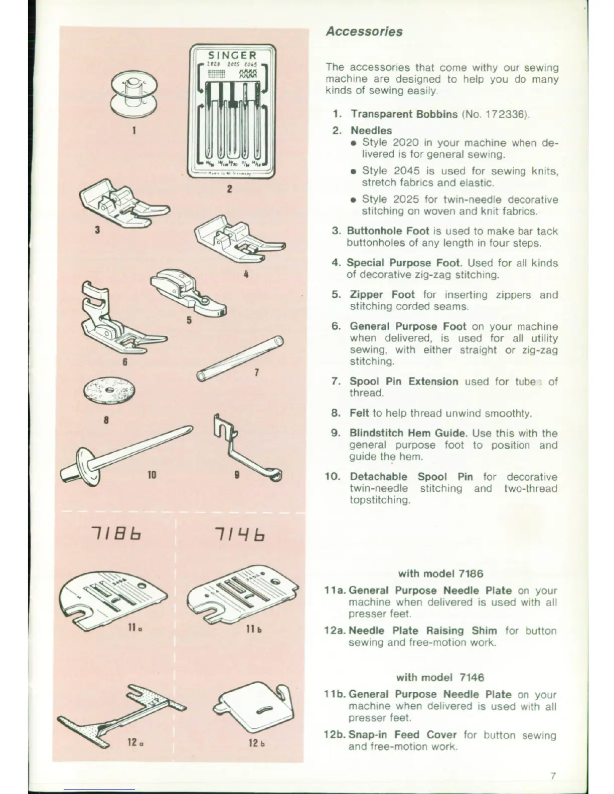 Singer 7146; 7186 - Accessories