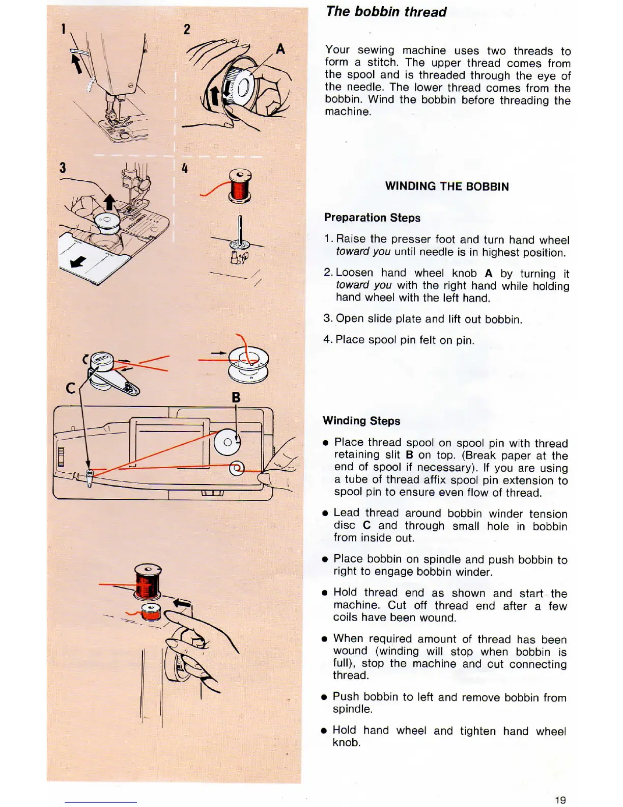 Singer 7174; 7184 - The Bobbin Thread; Winding the Bobbin; Preparation Steps; Winding Steps