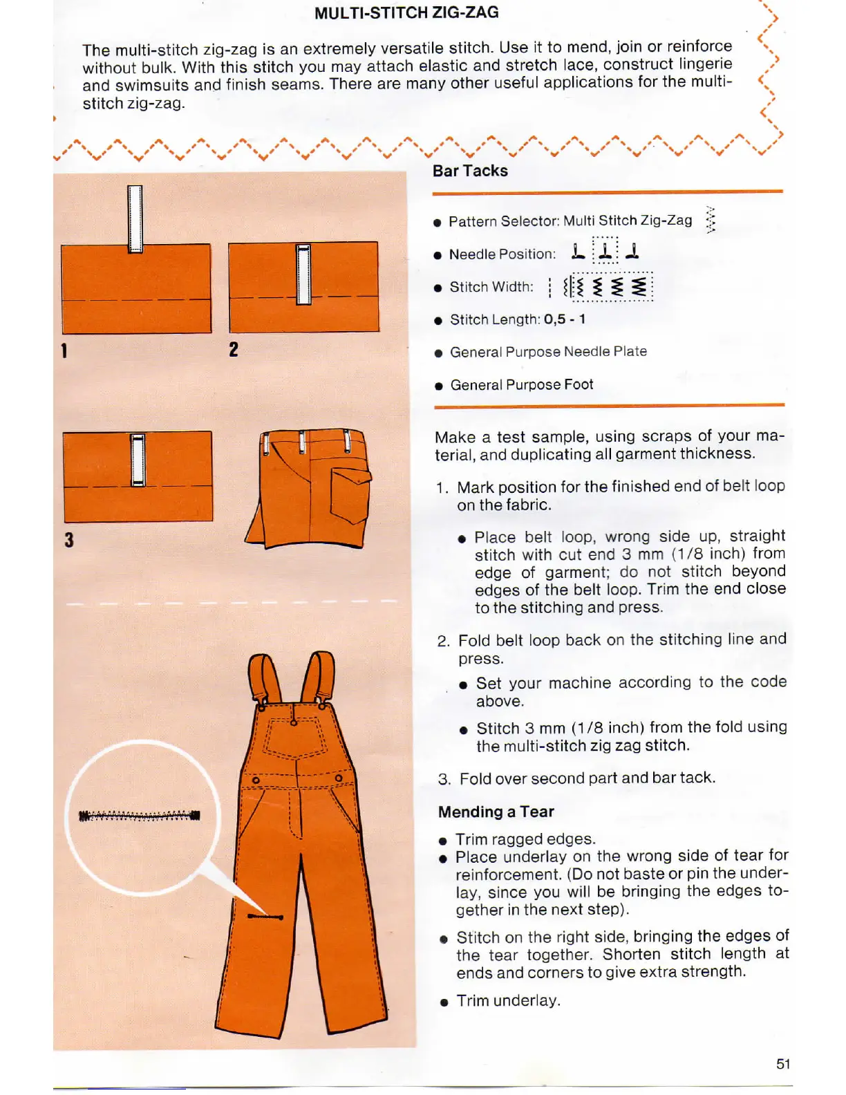 Singer 7174; 7184 - Multi-Stitch Zig-Zag; Bar Tacks; Mending a Tear