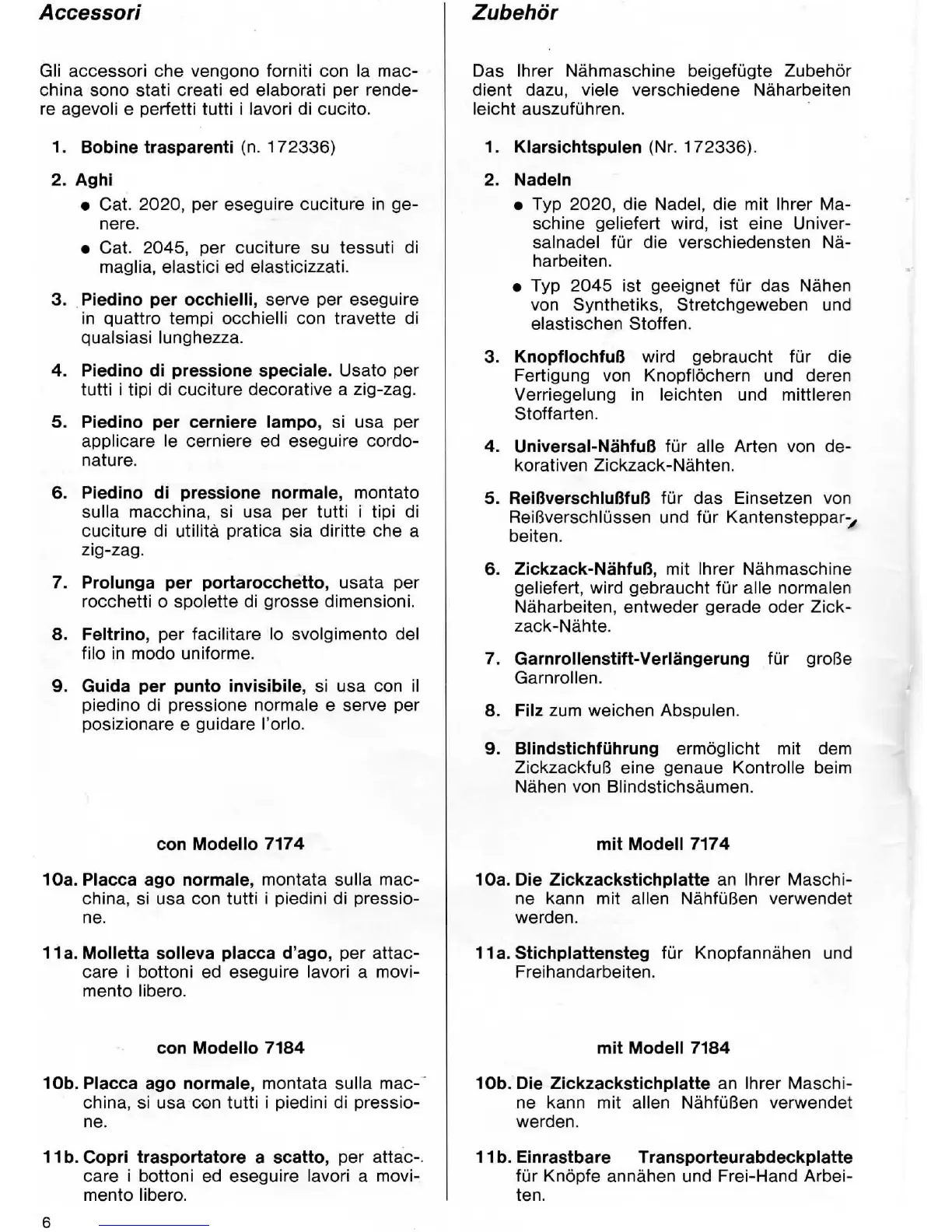 Singer 7174; 7184 - Accessories