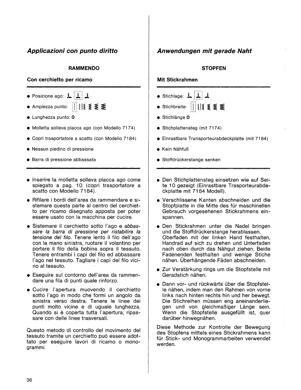 Singer 7184 - Applications with straight stitching; Darning
