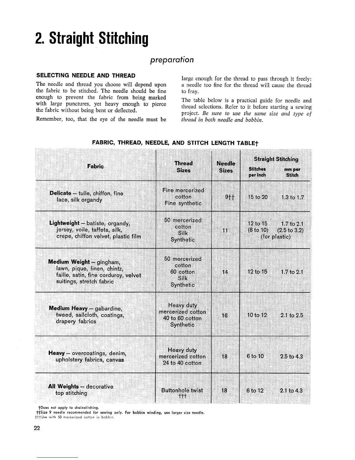 Singer 720 - 2. Straight Stitching; Selecting Needle and Thread