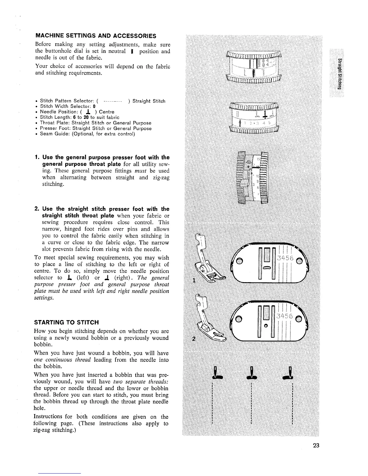 Singer 720 - Machine Settings and Accessories; Starting to Stitch