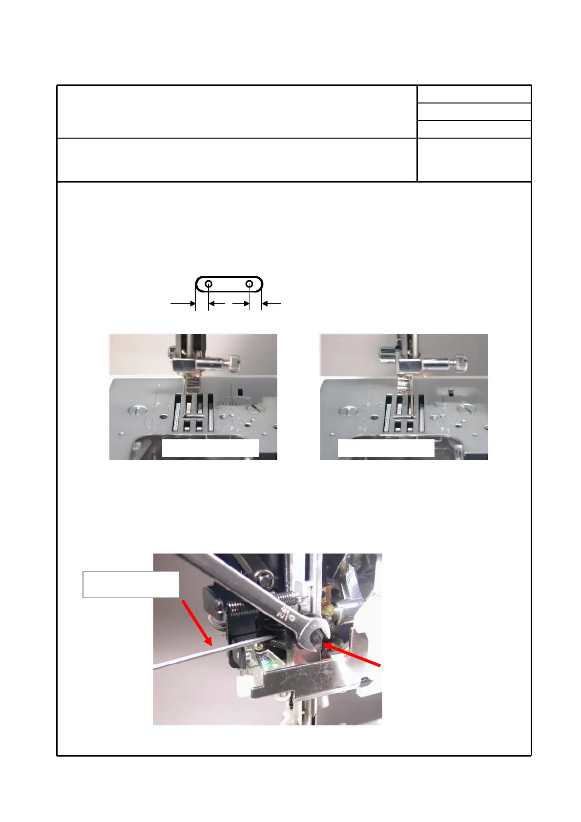 2. Turn hand wheel by hand and see if needle leaves the same clearance at both right