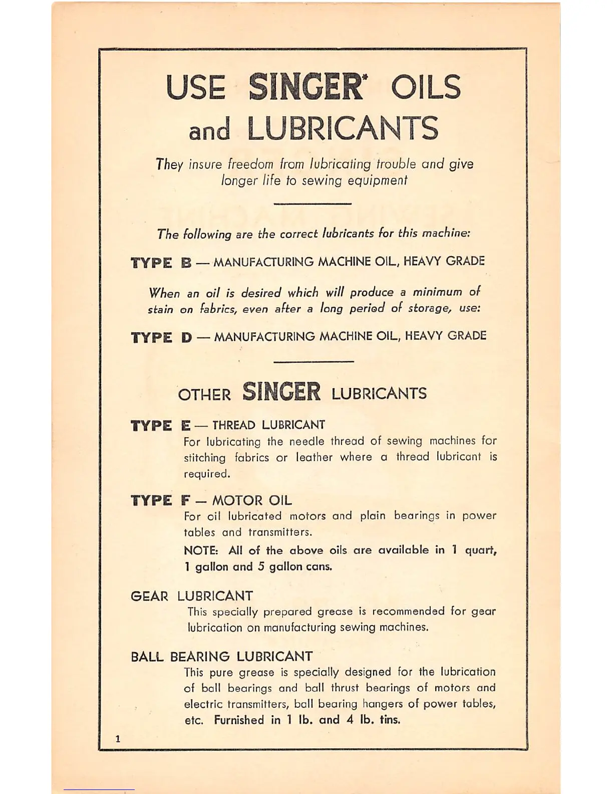 lubrication on manufacturing sewing machines.