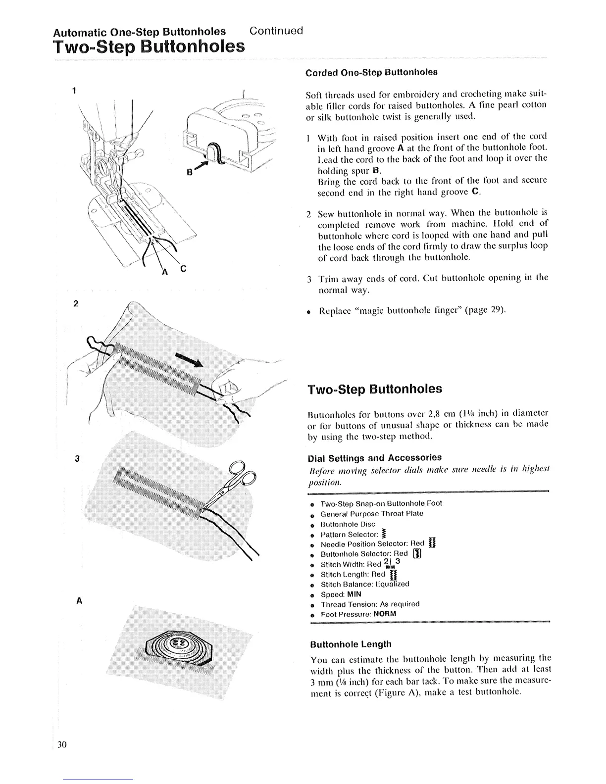 Singer 740 - Two-Step Buttonholes; Two-Step Buttonhole Method