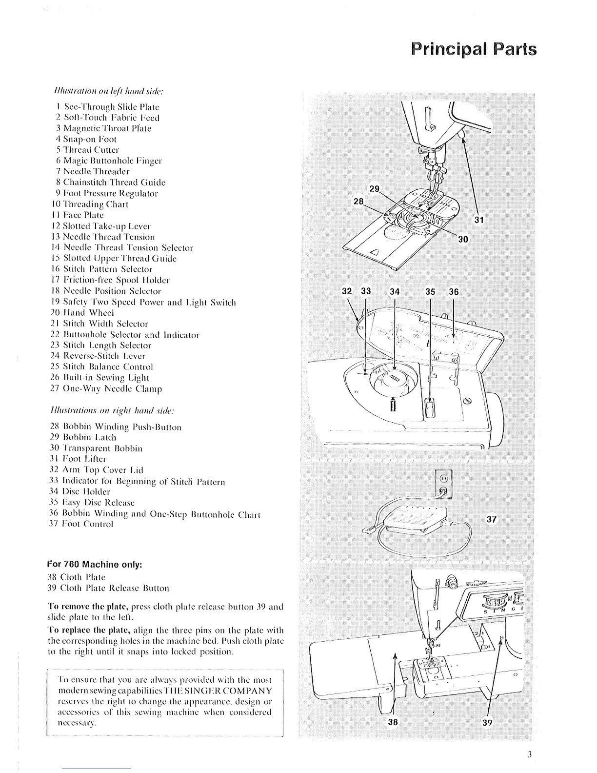 Singer 740 - Principal Parts