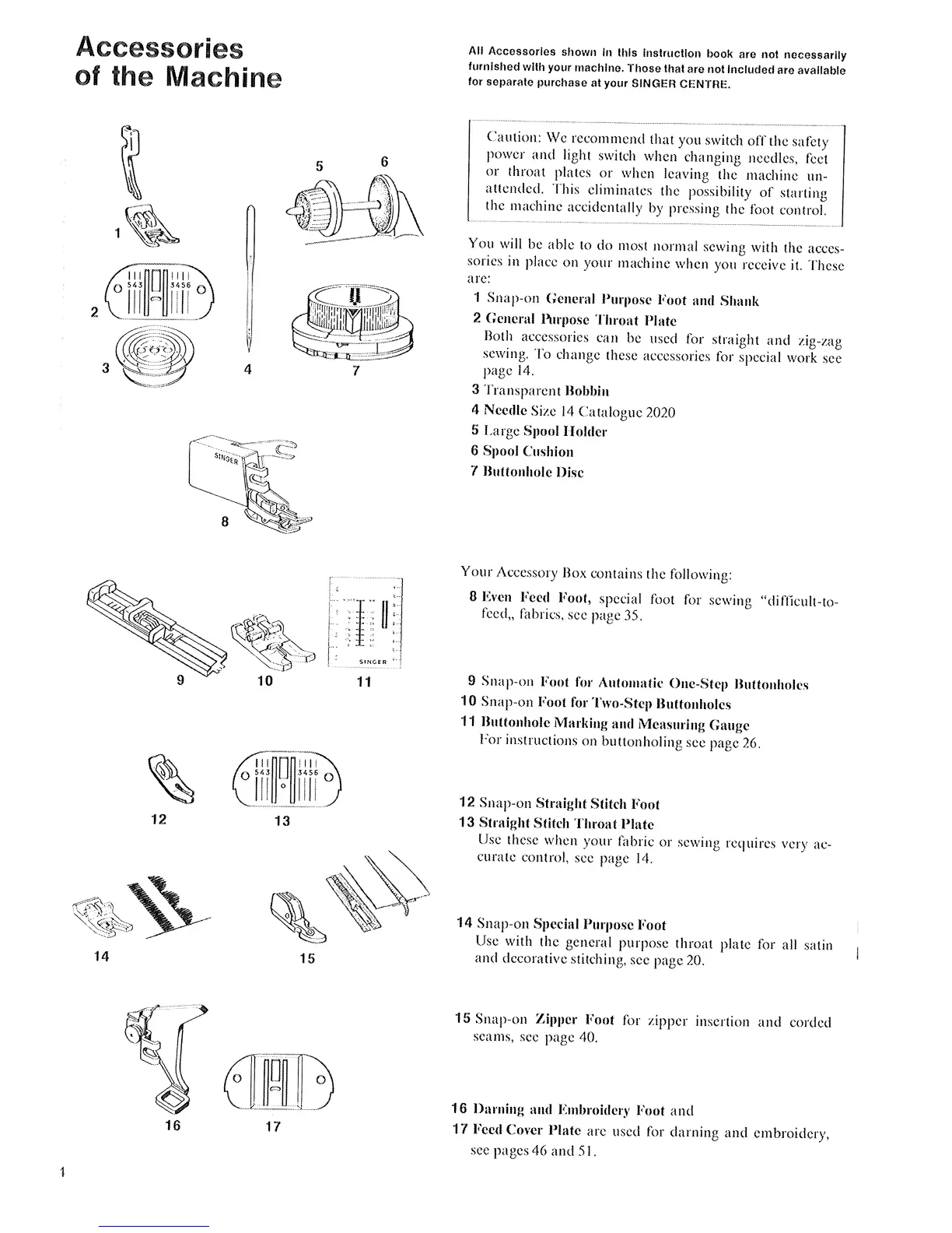 Singer 740 - Acessories; Accessories of the Machine