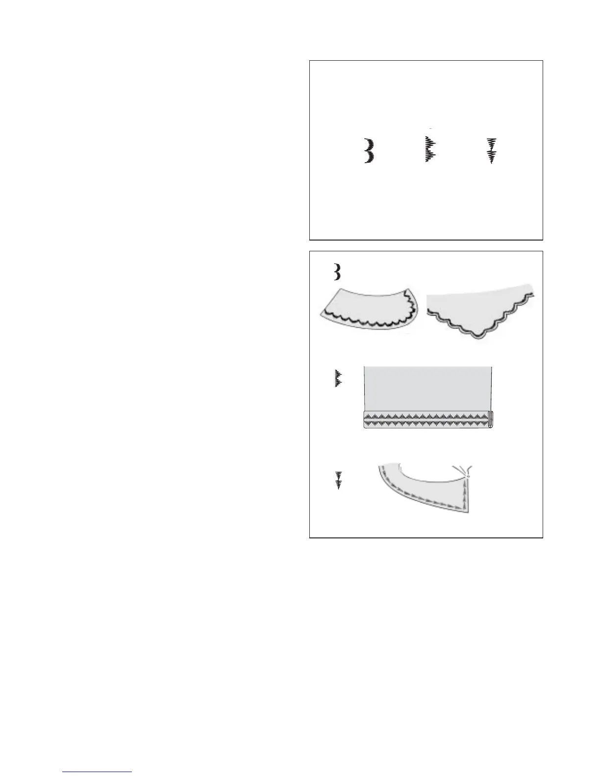 Use bias tape and fold back the edge. Sew the pyramid pattern