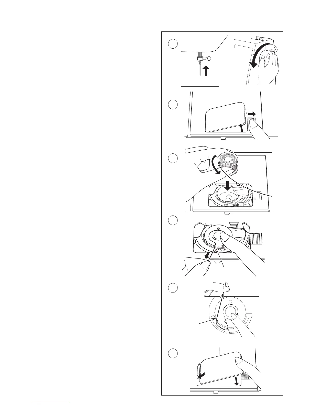 1. Raise the needle to its highest position by rotating the hand