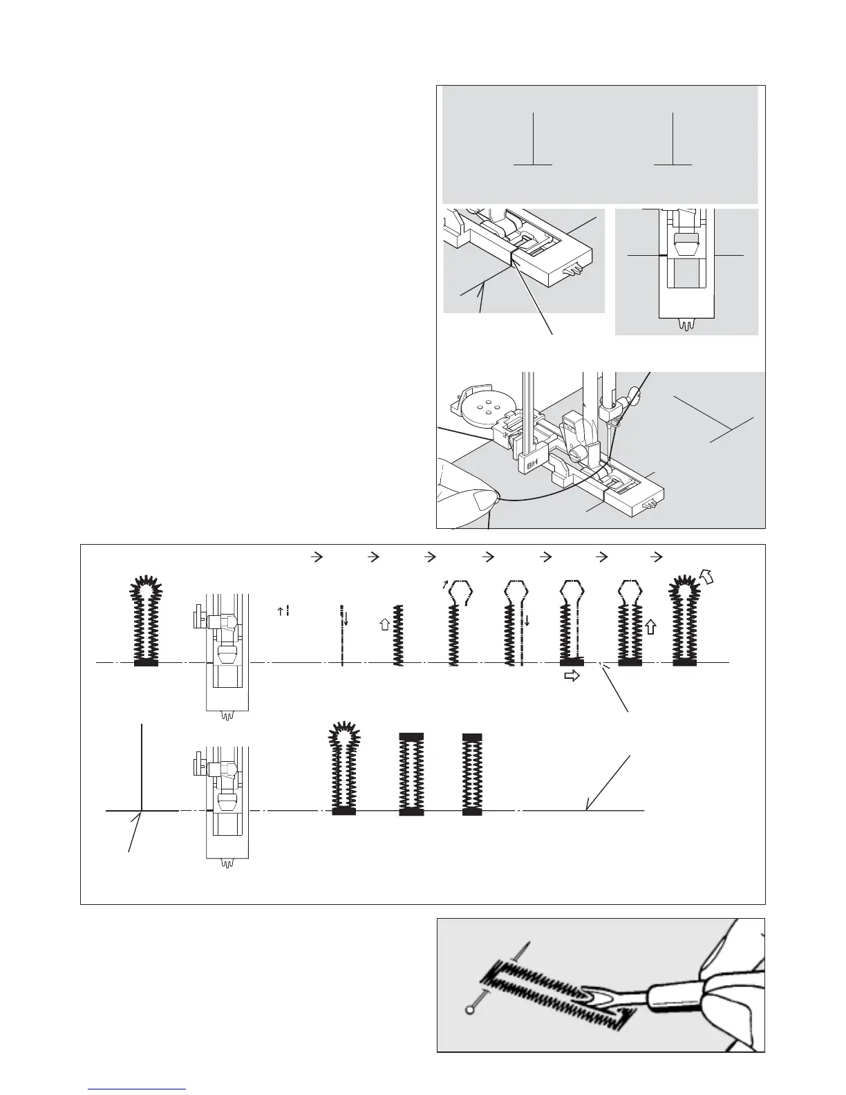 6. Place the fabric under the foot. Pull out the bobbin thread
