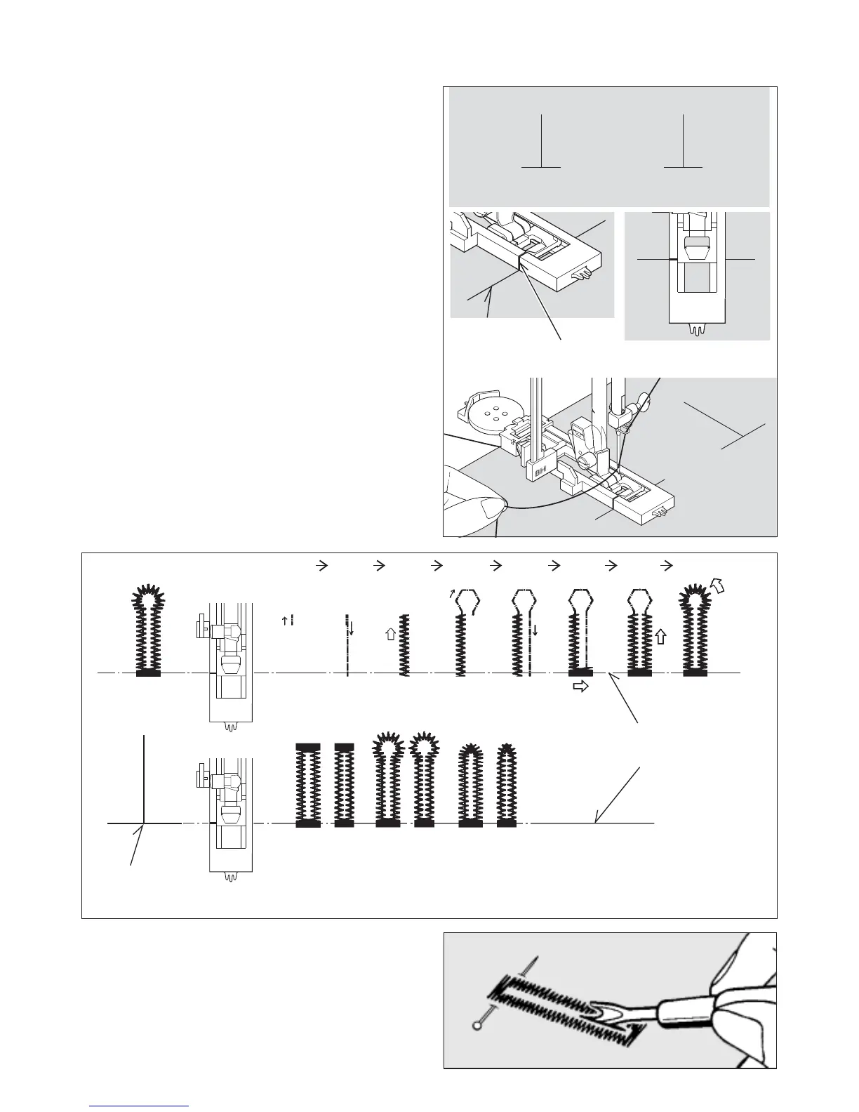 6. Place the fabric under the foot. Pull out the bobbin thread