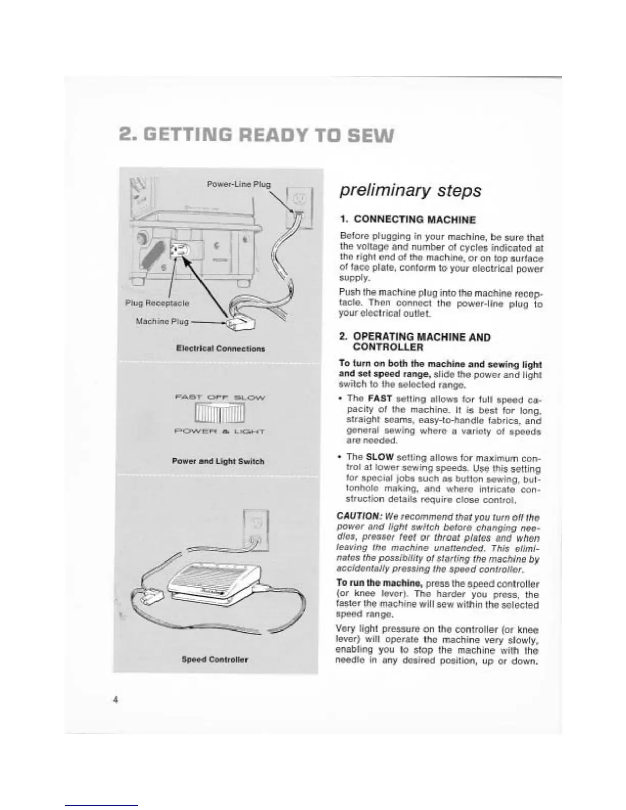 Singer 750 - GETTING READY TO SEW; Connecting and Operating Machine