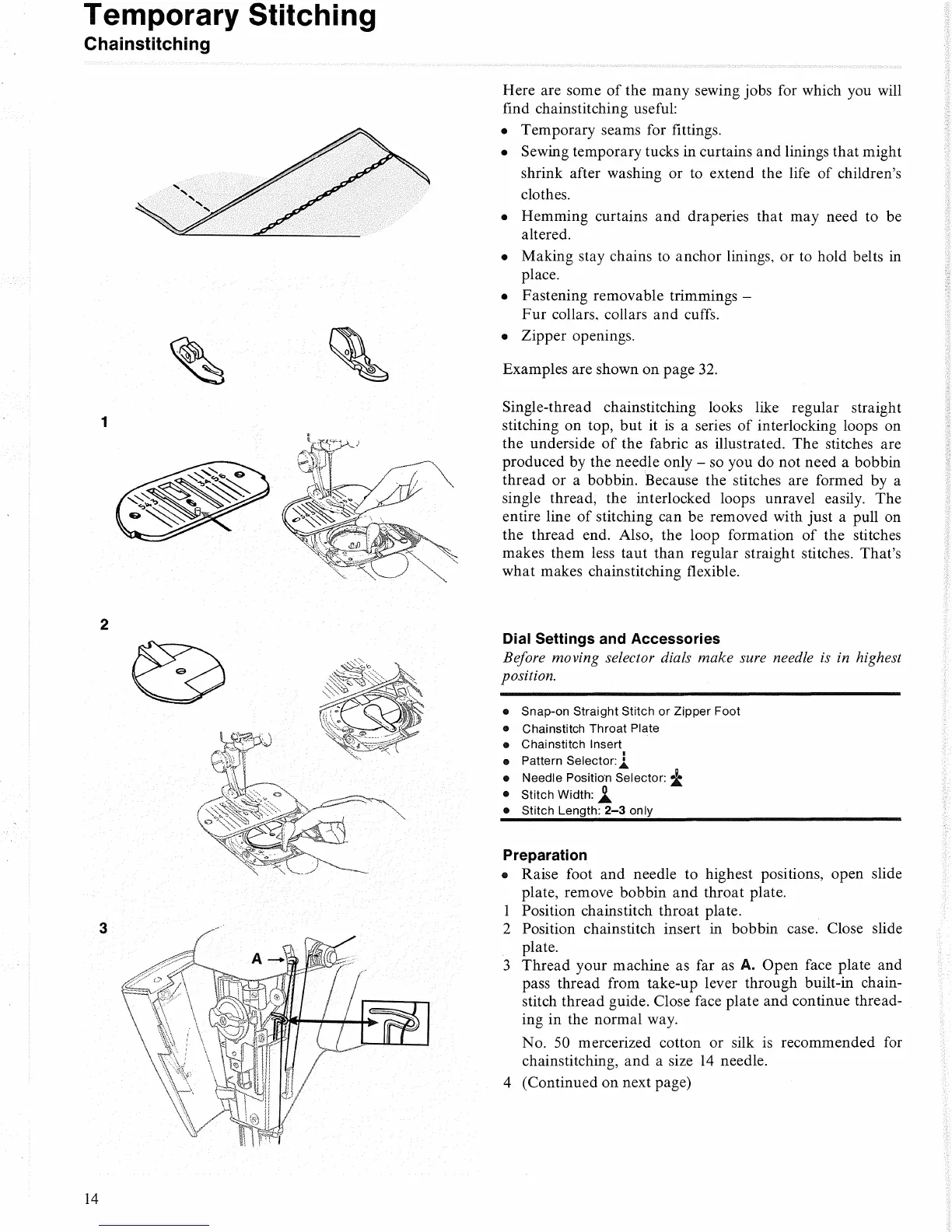 Singer 764 - Chainstitching; Preparation and Dial Settings
