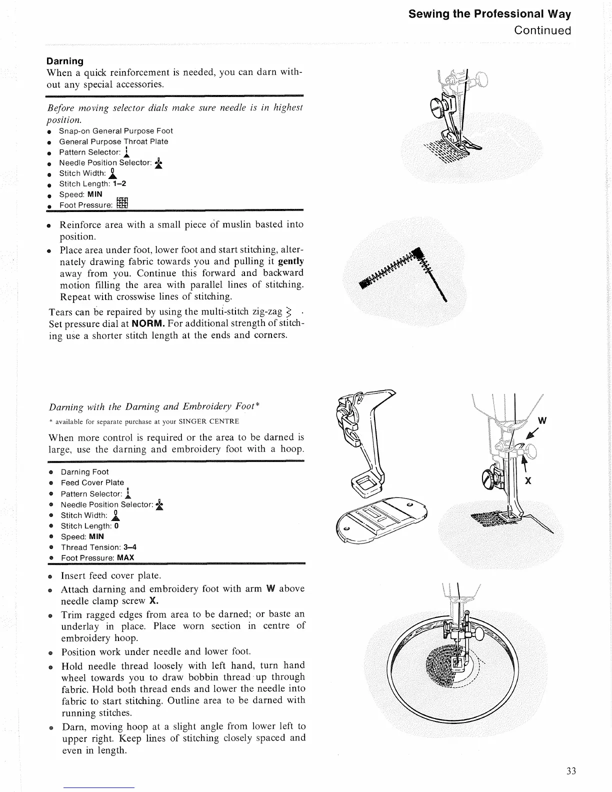 Singer 764 - Darning Techniques; Darning with Specialized Foot