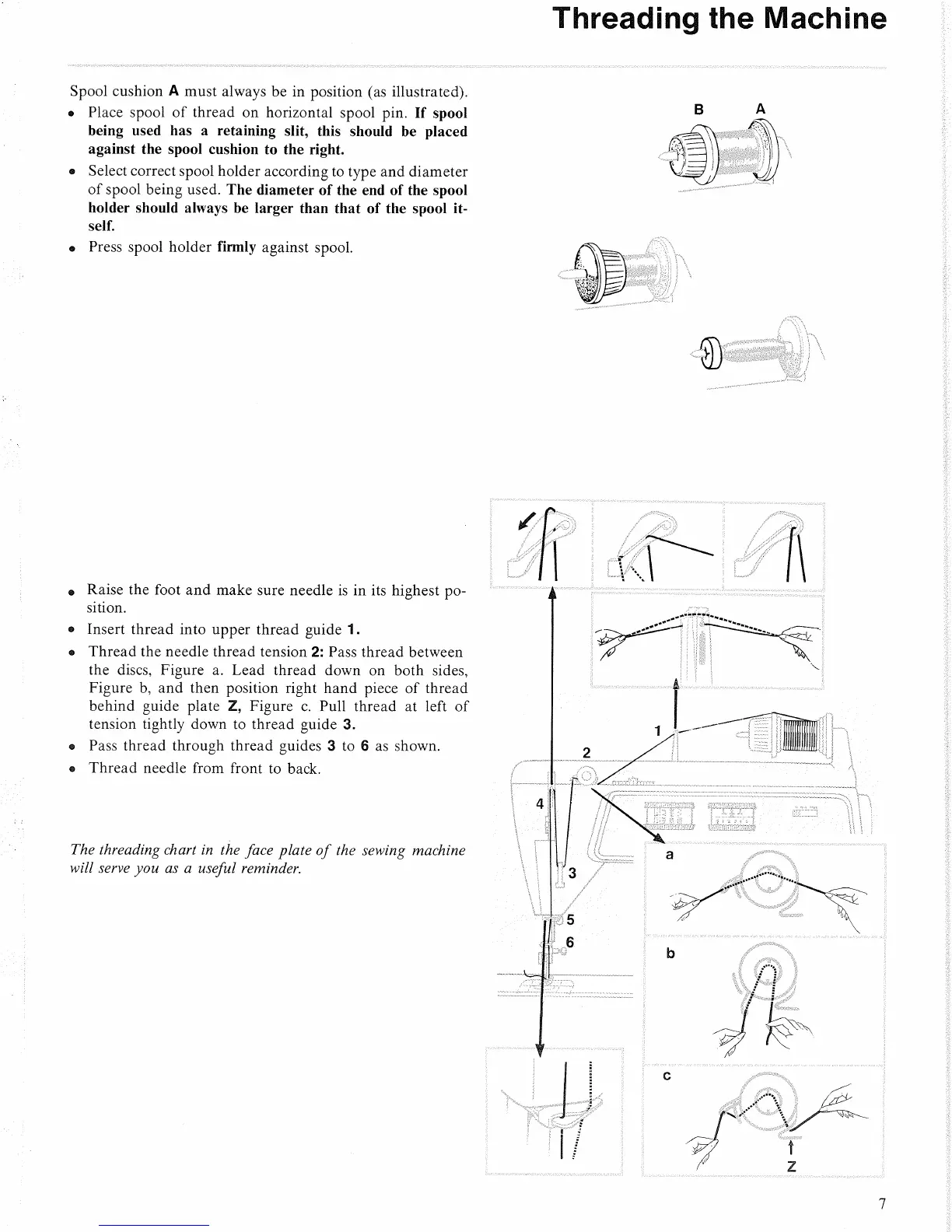 Singer 764 - Threading the Machine; Spool Placement and Holder Selection; Thread Path through Guides