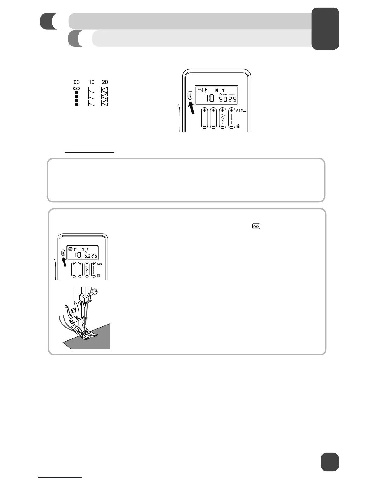 d’aiguille. Abaissez le pied presseur, ensuite appuyer sur le rhéostat