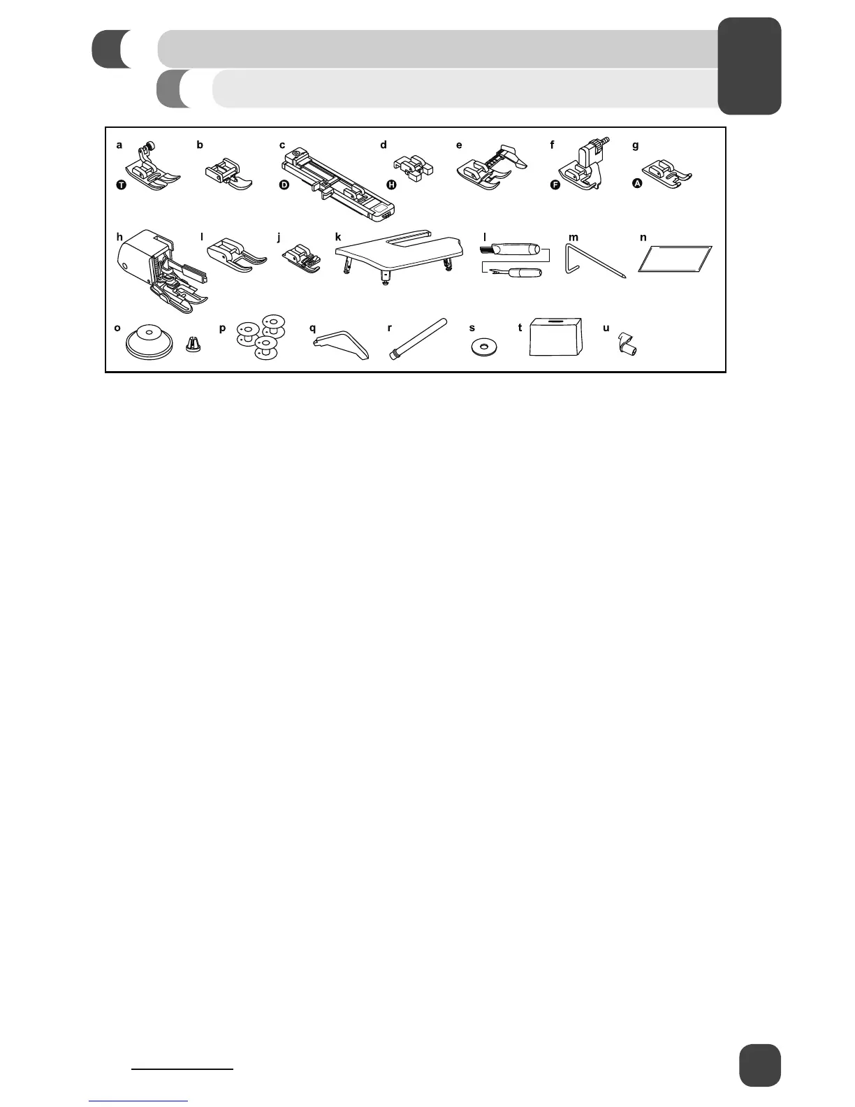 m. Edge/Quilting guide (for straight & accurate quilting) (* This guide may be optional with