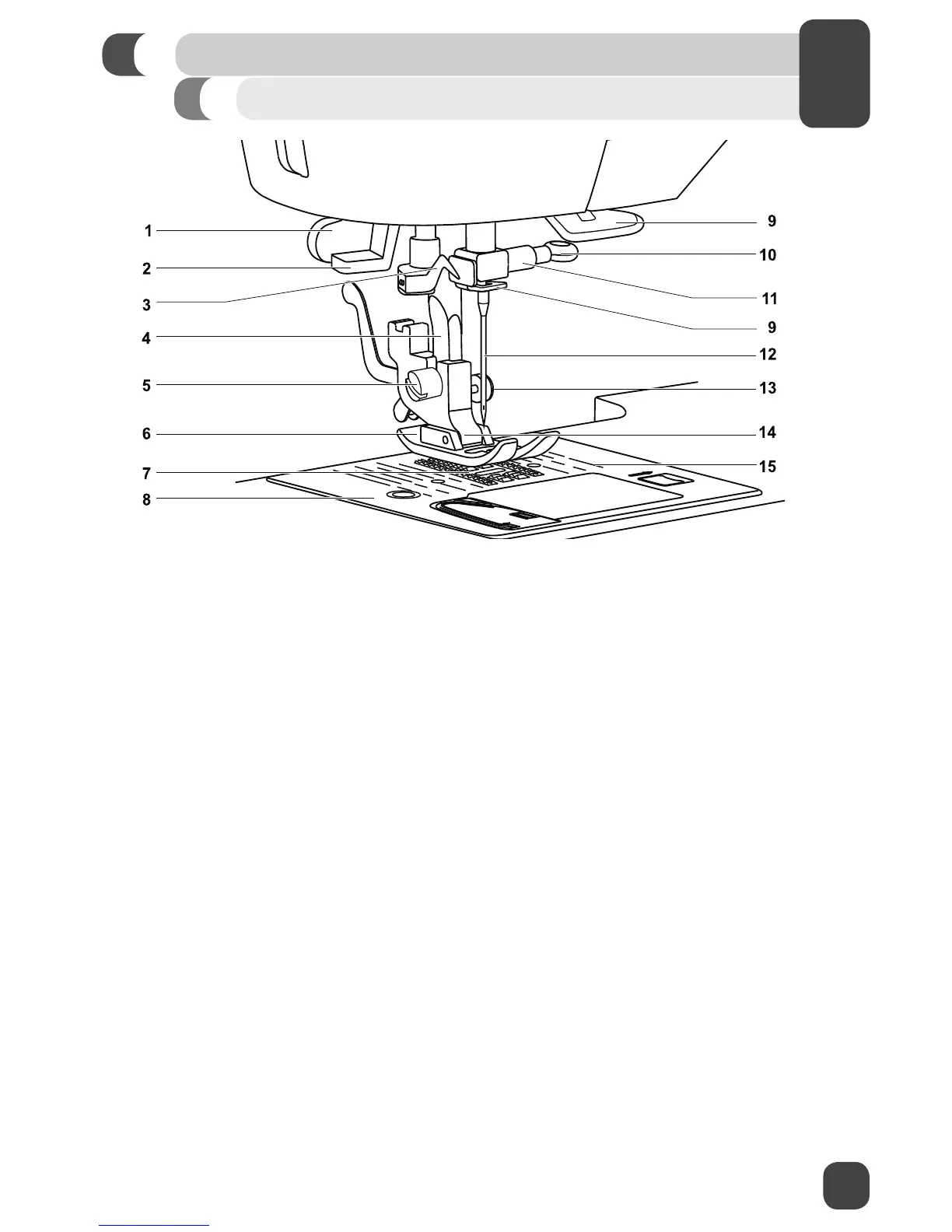 5. TORNILLO PRENSATELAS asegura el sujeta prensatelas (zanco) en la barra presionadora.