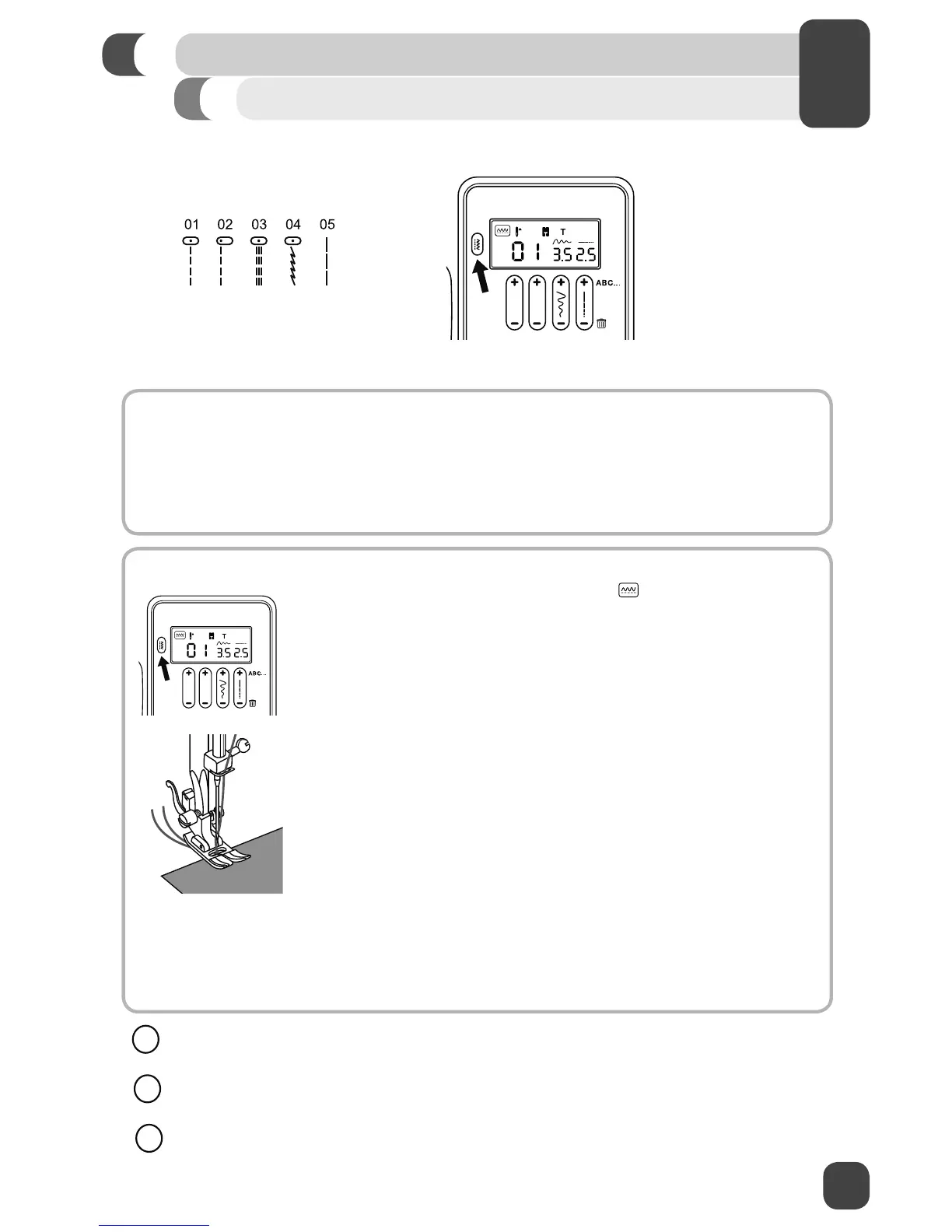 puntada 01. La máquina automáticamente por defecto para puntada 01