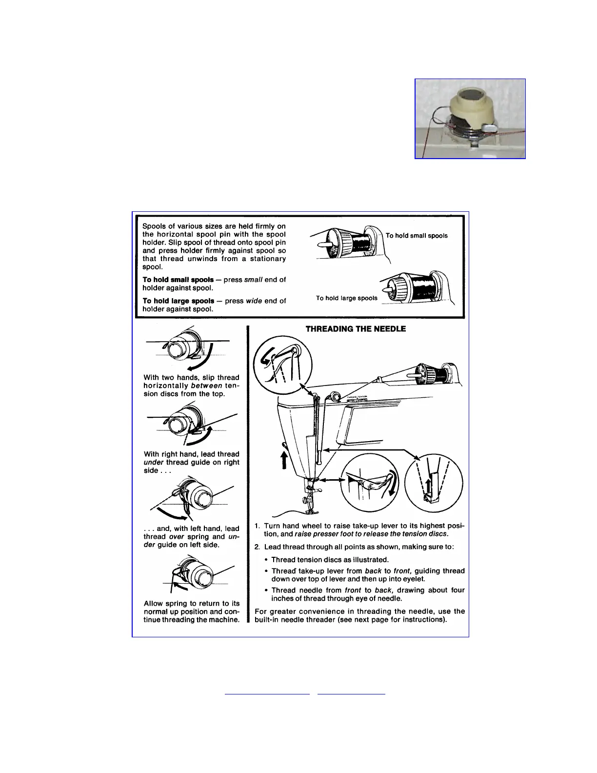 paths are engaged on the tension unit. At the take up lever, hold the spool by hand, and pull the thread a little to ensure the