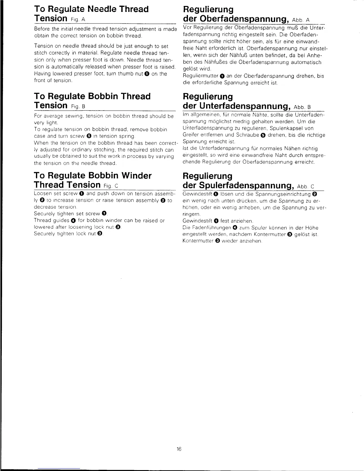 Singer 770D1 - To Regulate Needle Thread Tension; To Regulate Bobbin Thread Tension; To Regulate Bobbin Winder Thread Tension