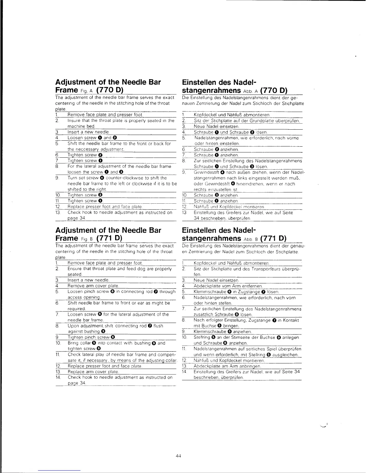 Singer 770D1 - Adjustment of the Needle Bar Frame