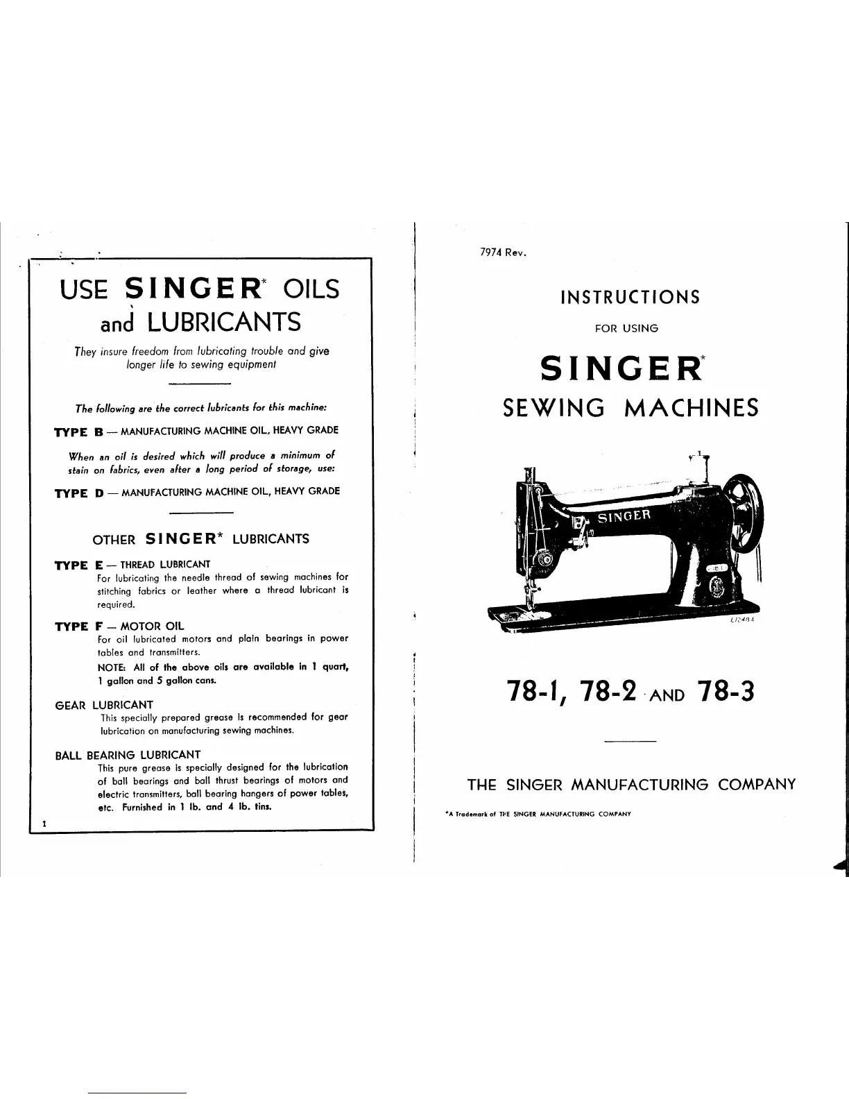 Singer 78-1 - USE SINGER* OILS and LUBRICANTS