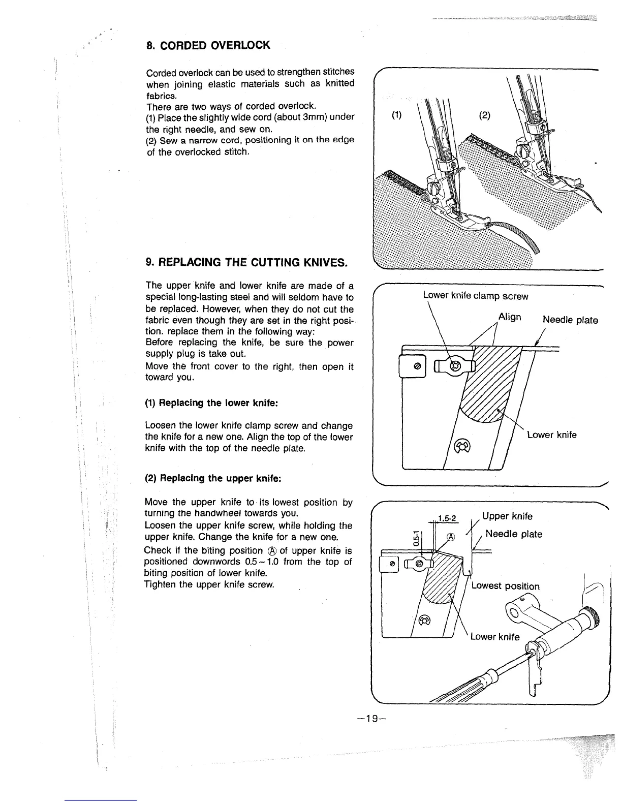 Singer 7934 - Corded Overlock; Replacing the Cutting Knives