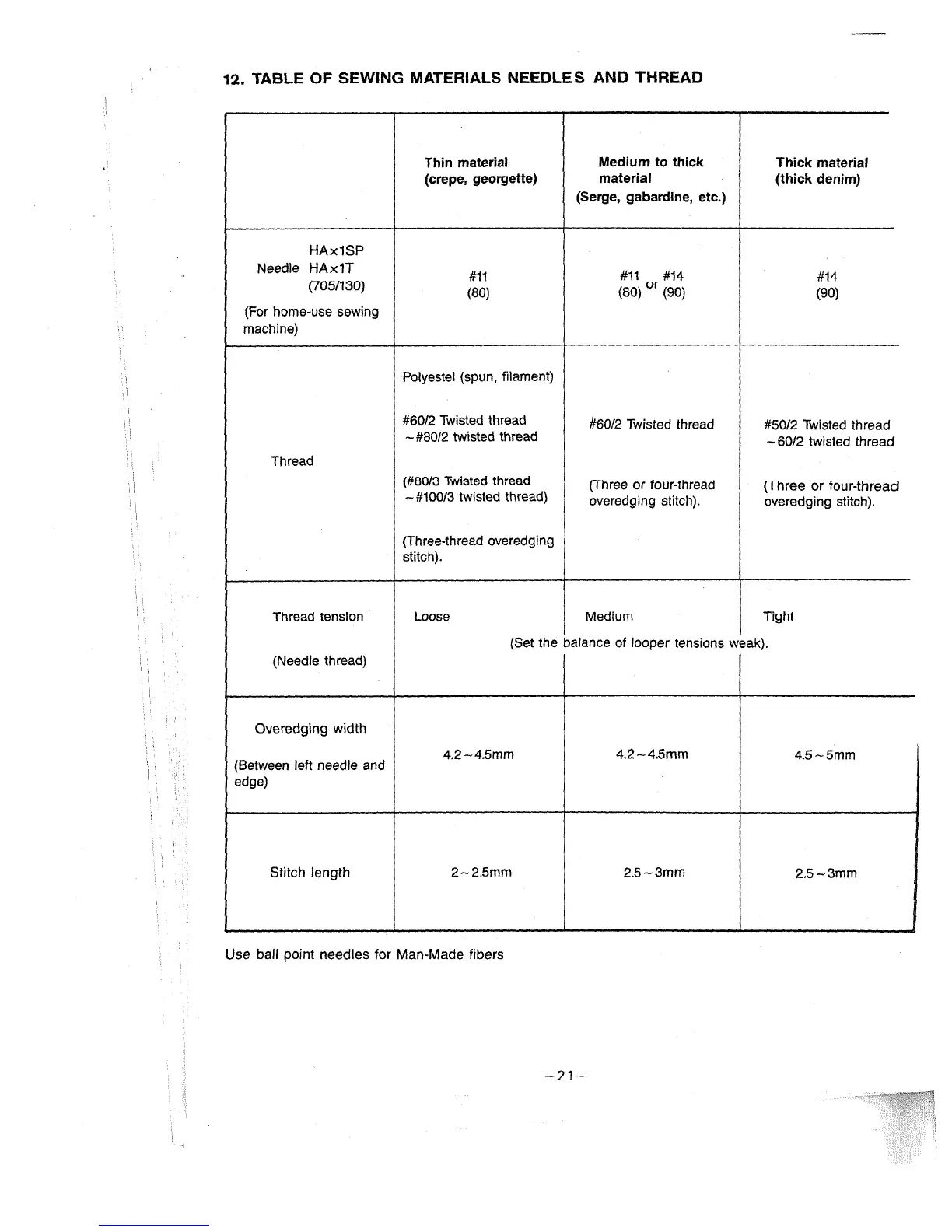 Singer 7934 - Table of Sewing Materials, Needles, and Thread
