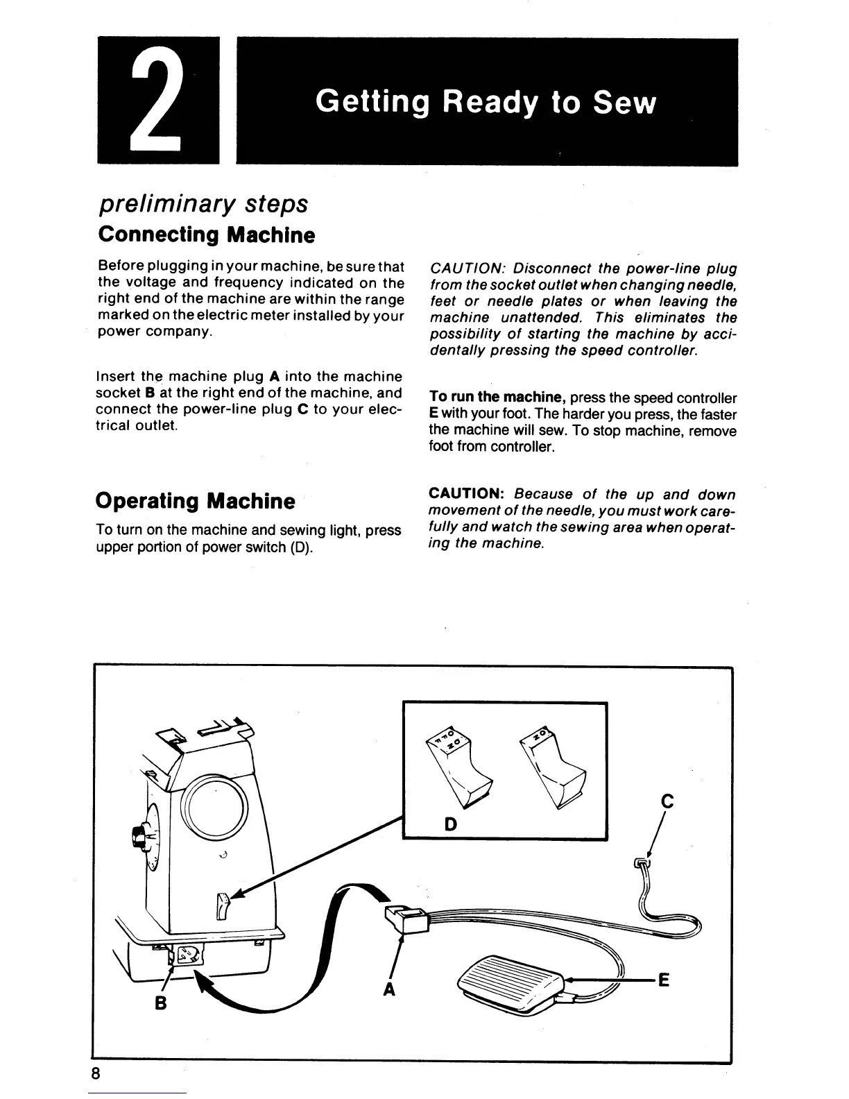 Singer 8002 - Getting Ready to Sew; Connecting and Operating the Machine