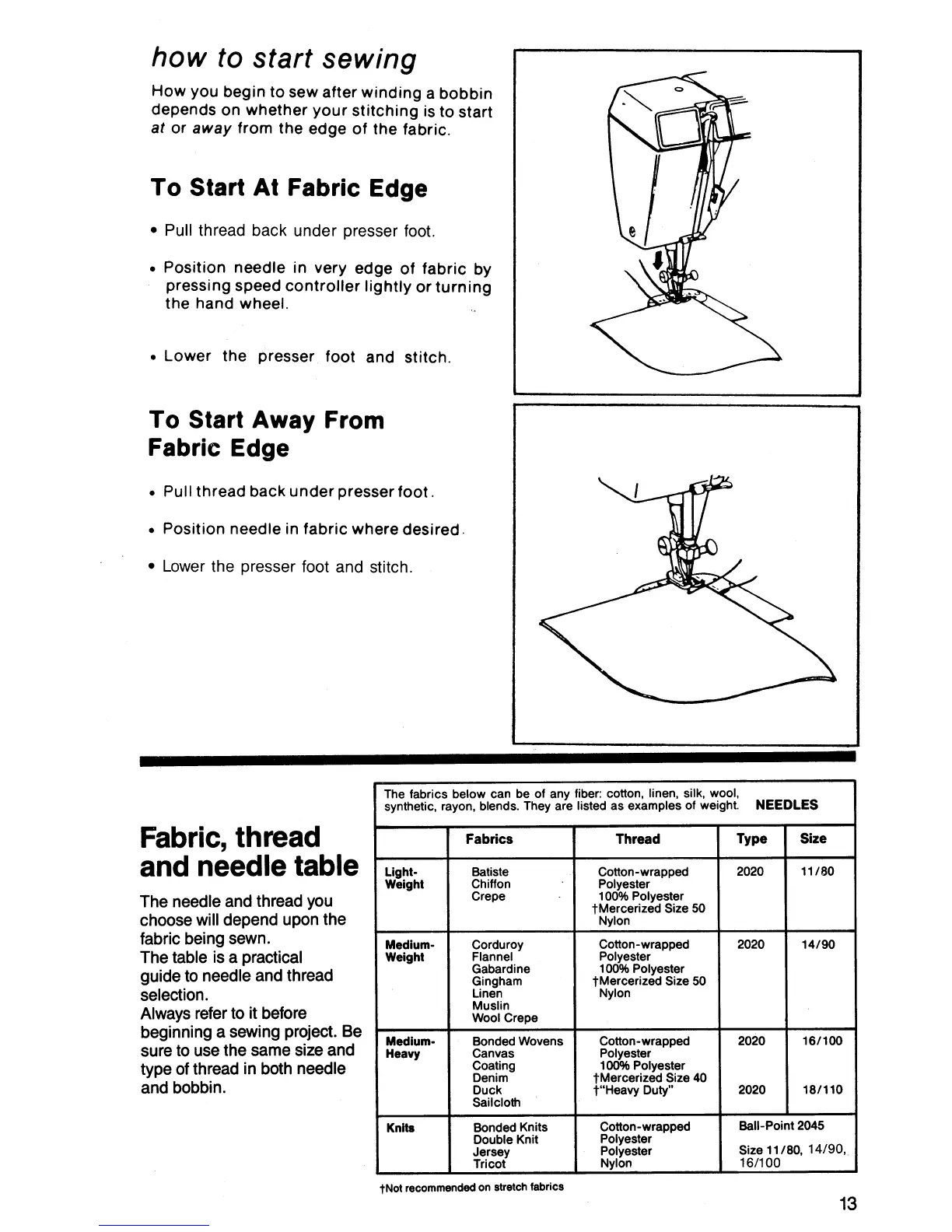 Singer 8007 - How to Start Sewing; To Start At Fabric Edge; To Start Away From Fabric Edge