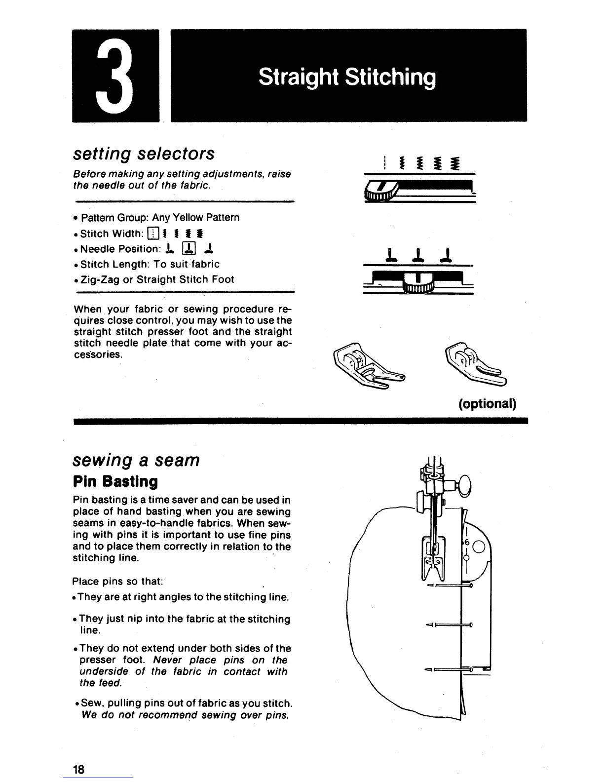 Singer 8007 - Straight Stitching; Setting Selectors; Sewing a Seam
