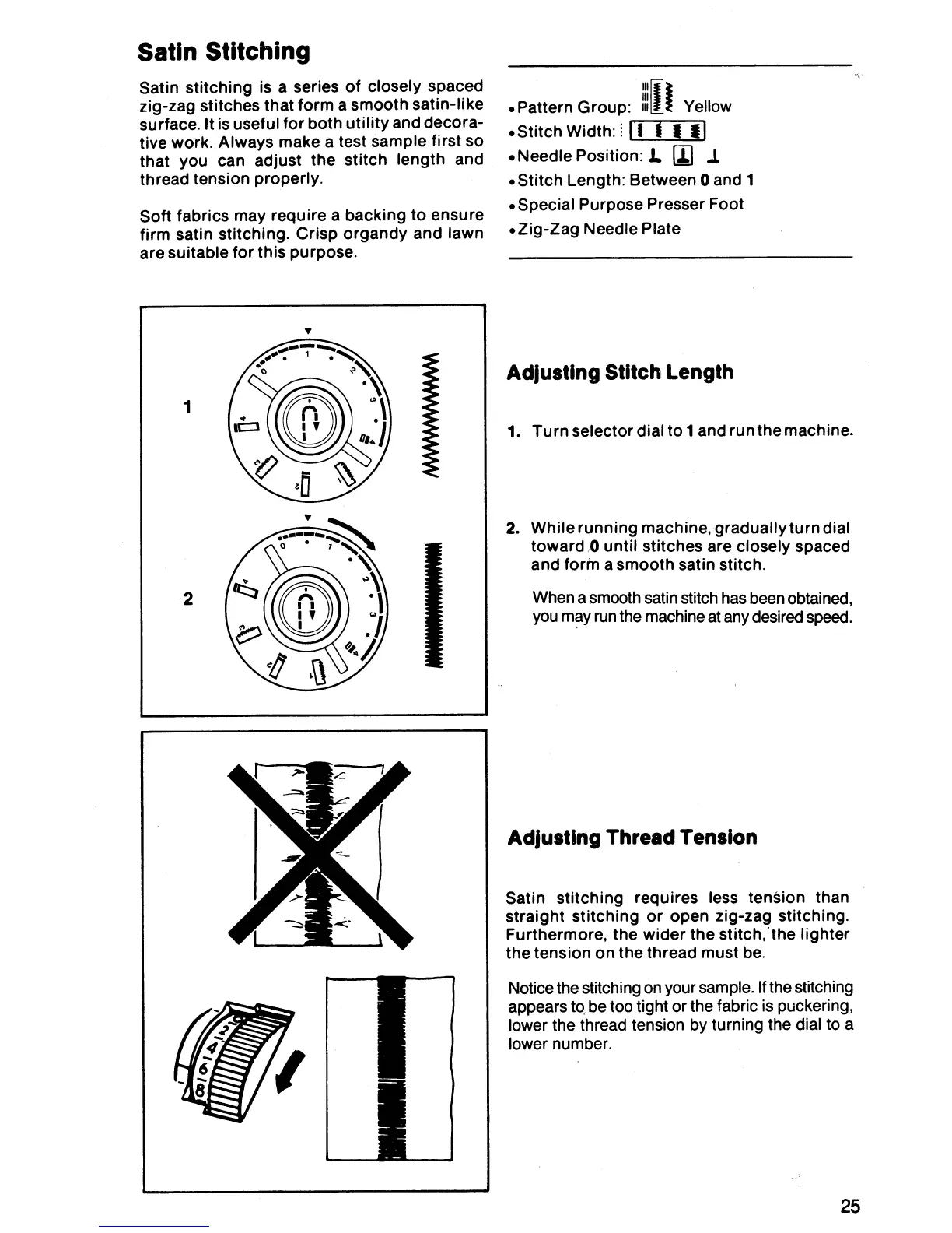 Singer 8007 - Satin Stitching; Adjusting Stitch Length; Adjusting Thread Tension