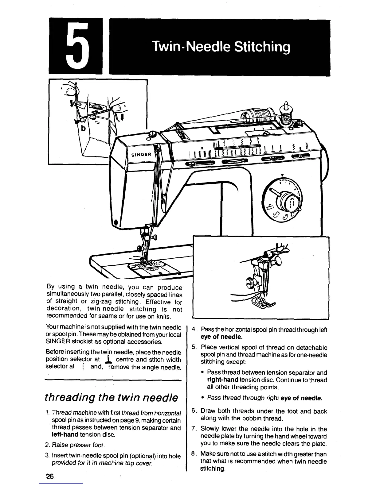 Singer 8007 - Twin-Needle Stitching; Threading the Twin Needle