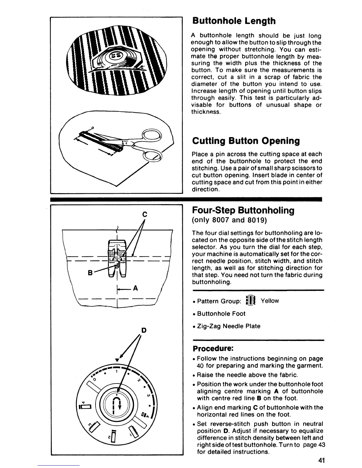 Singer 8007 - Buttonhole Length; Cutting Button Opening; Four-Step Buttonholing