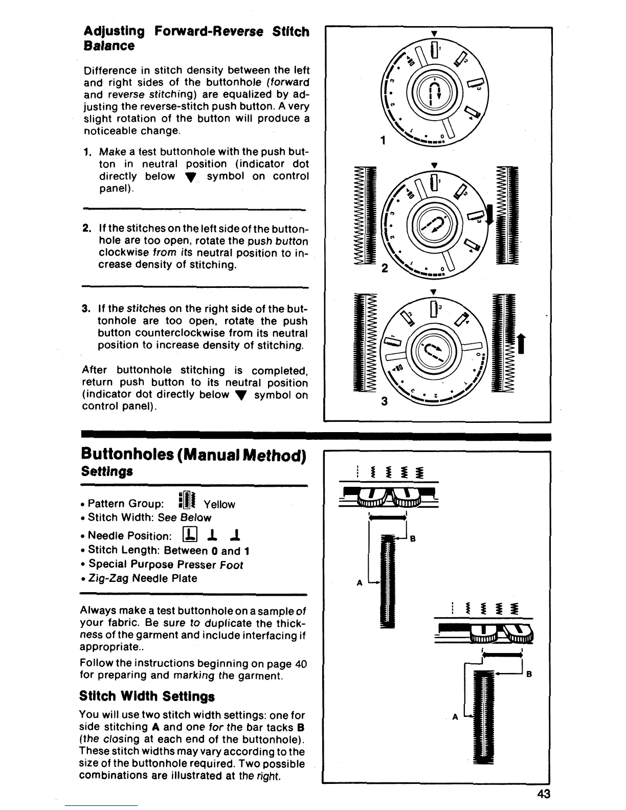 Singer 8007 - Adjusting Forward-Reverse Stitch Balance; Buttonholes (Manual Method)