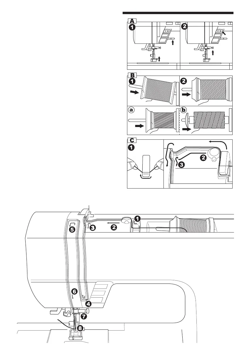 B. SETTING SPOOL OF THREAD ON SPOOL