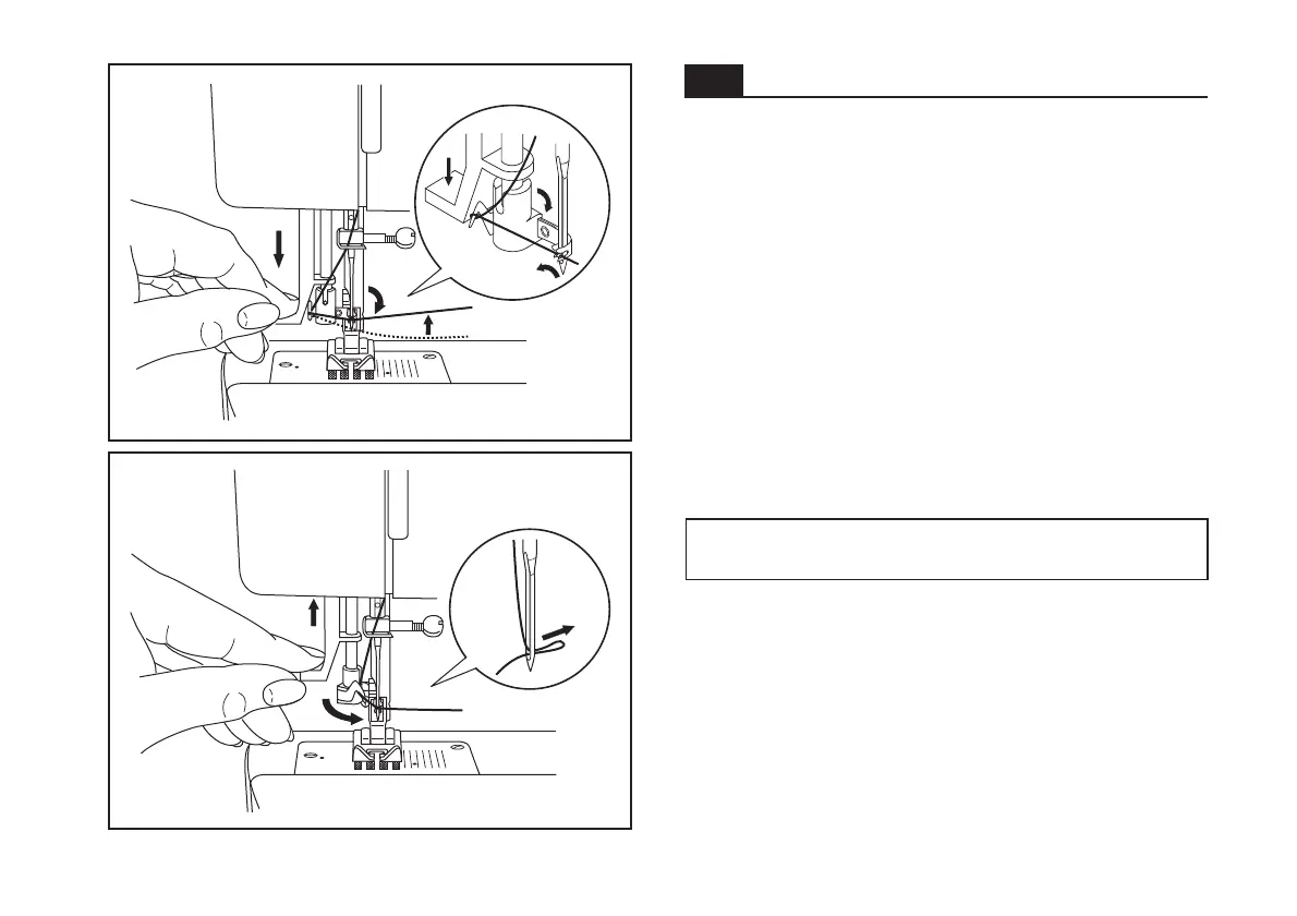 - Pull the thread through the needle eye.