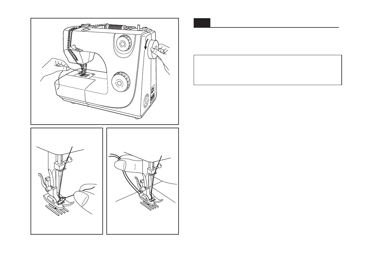 Hold the upper thread with the left hand. Turn the handwheel (1)